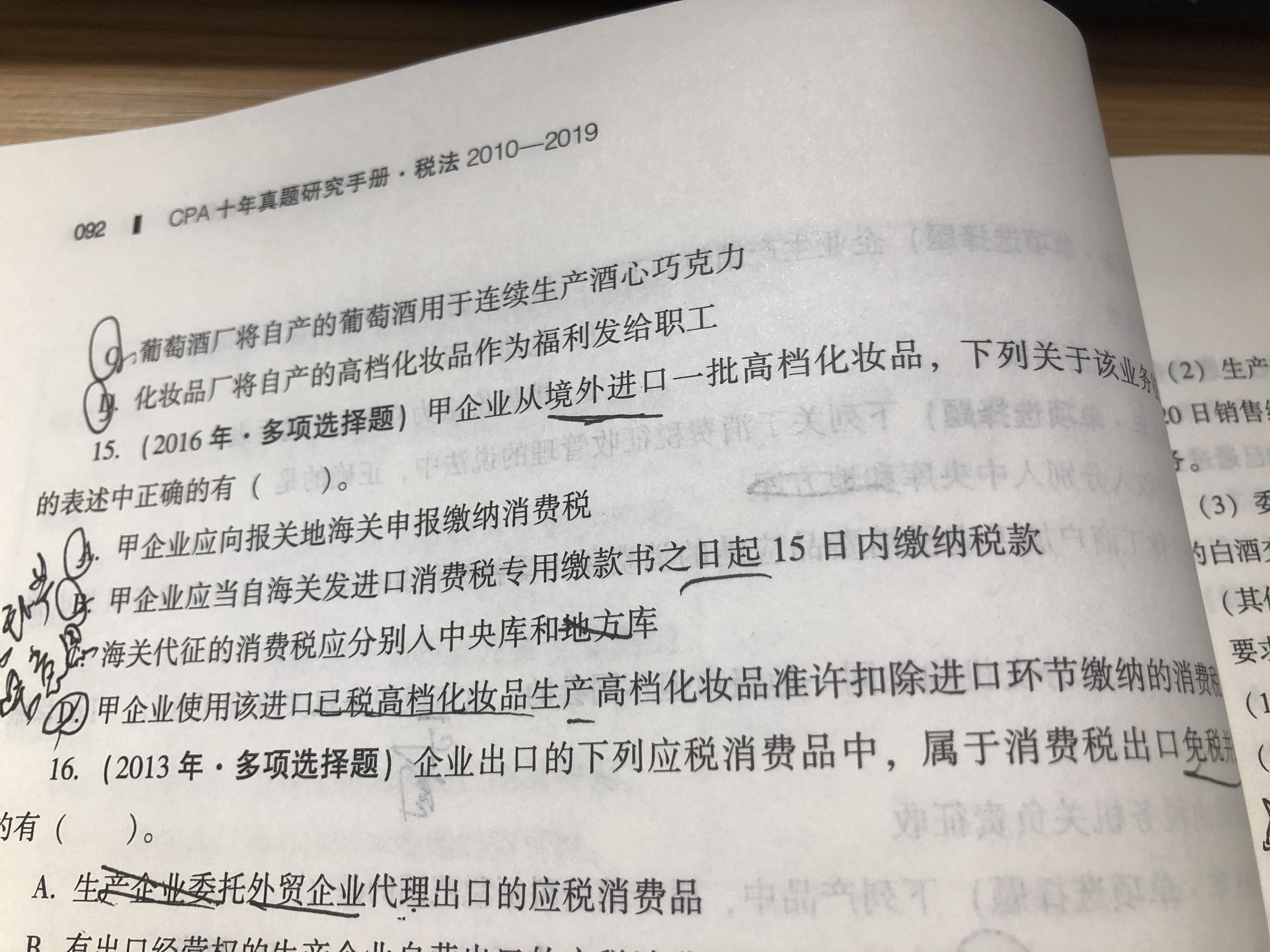 15题D选项继续生产的没有离开消费税领域不交消费税吧