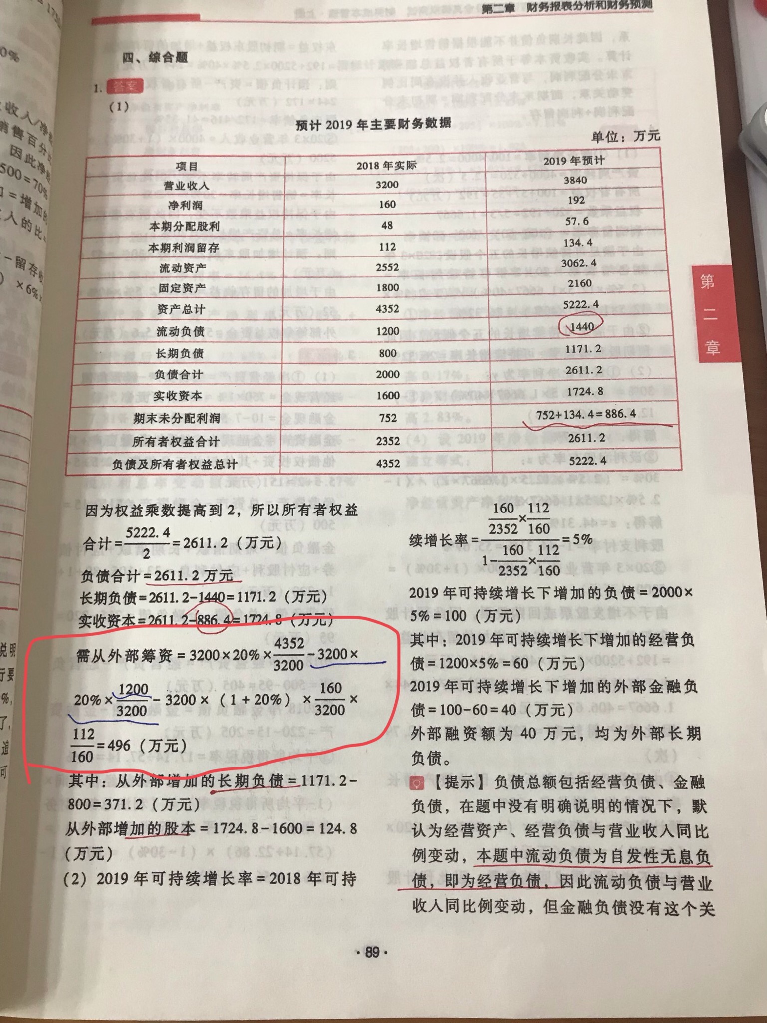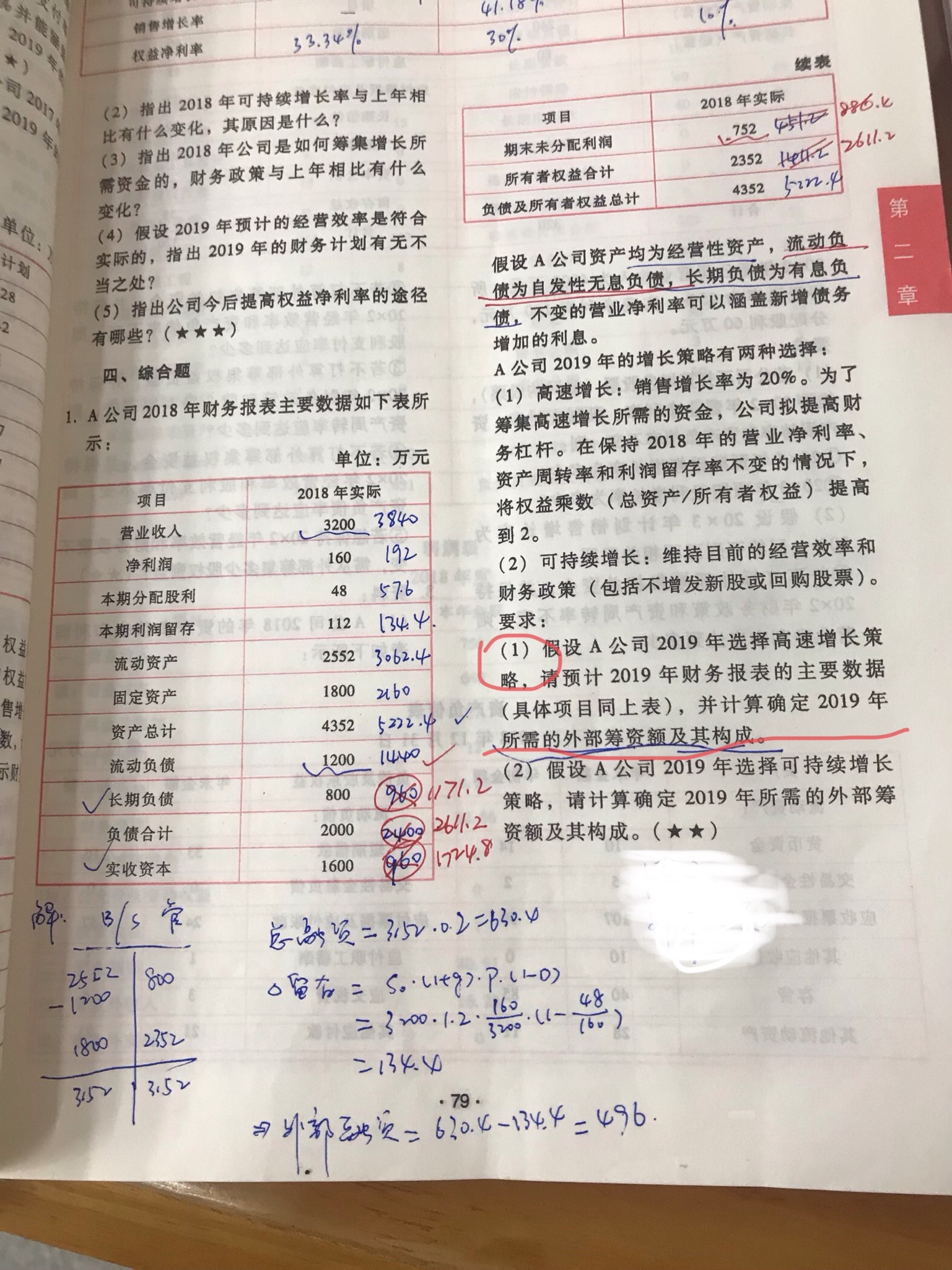 两个小疑问哈。综合题第一问(画红线),我自己的解法如第一张图下方,我的疑问是: 没考虑可动用金融资产,题目没说fa=0啊,虽然最后结果一样。 第二张图是书后面答案,我的疑问是,不看懂外部融资计算式子的意思,请老师帮忙解答,谢谢了