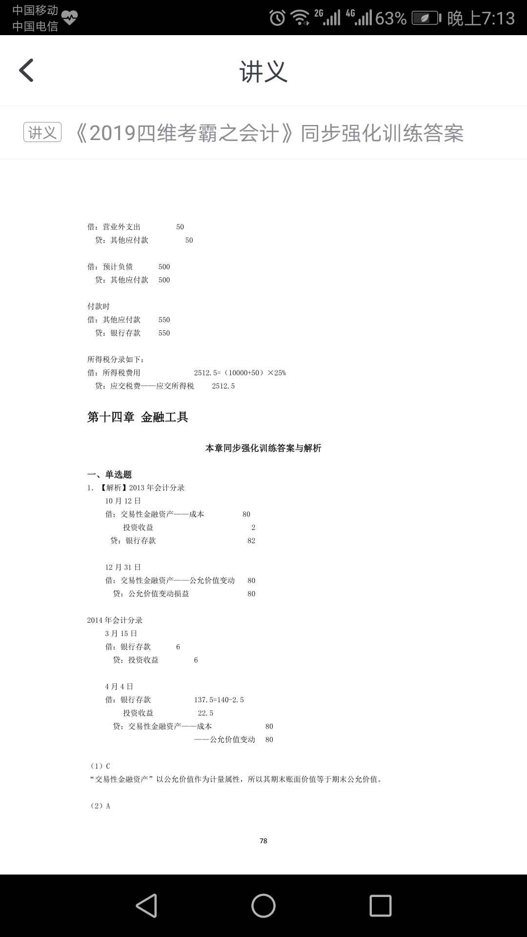 但这是18年的处理原则处理的,19年没有最后一步“处置时持有期间公允价值转投资收益”,这题还是按照18年的原值处理的。