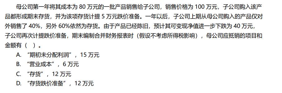 第三笔分录解释:个报中存货成本为100*60%=60,可变现净值为40,所以个报已经计提了减值20;合报中存货成本为80*60%=48,可变现净值为40,合报真正认可的减值为8,需要冲回的减值为12。前两笔分录合计冲回了3,所以第三笔再冲回9.