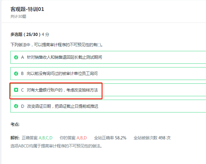老师,这个C选项,银行存款不是必函的嘛?这里还要考虑抽样吗?