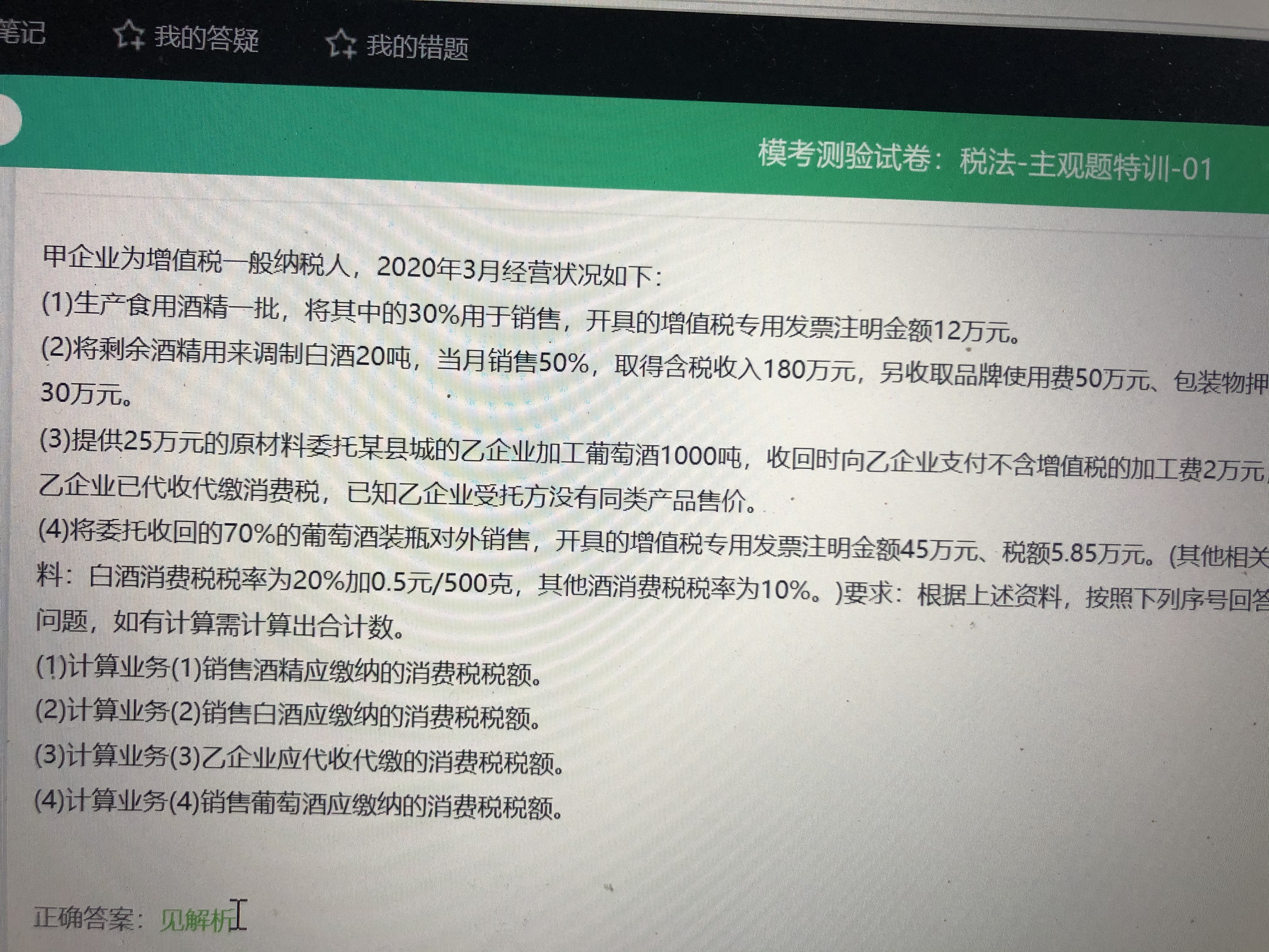 税法: 一 2017年消费税真题第二问答案写的欠妥,不行该是...