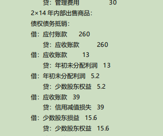 分录5 同样,影响了今年的少数股东,逆流交易影响了子公司利润,使得子公司利润增加39,少数股东也按比例享受,所以少数股东权益增加,损益增加,金额为39*40%。