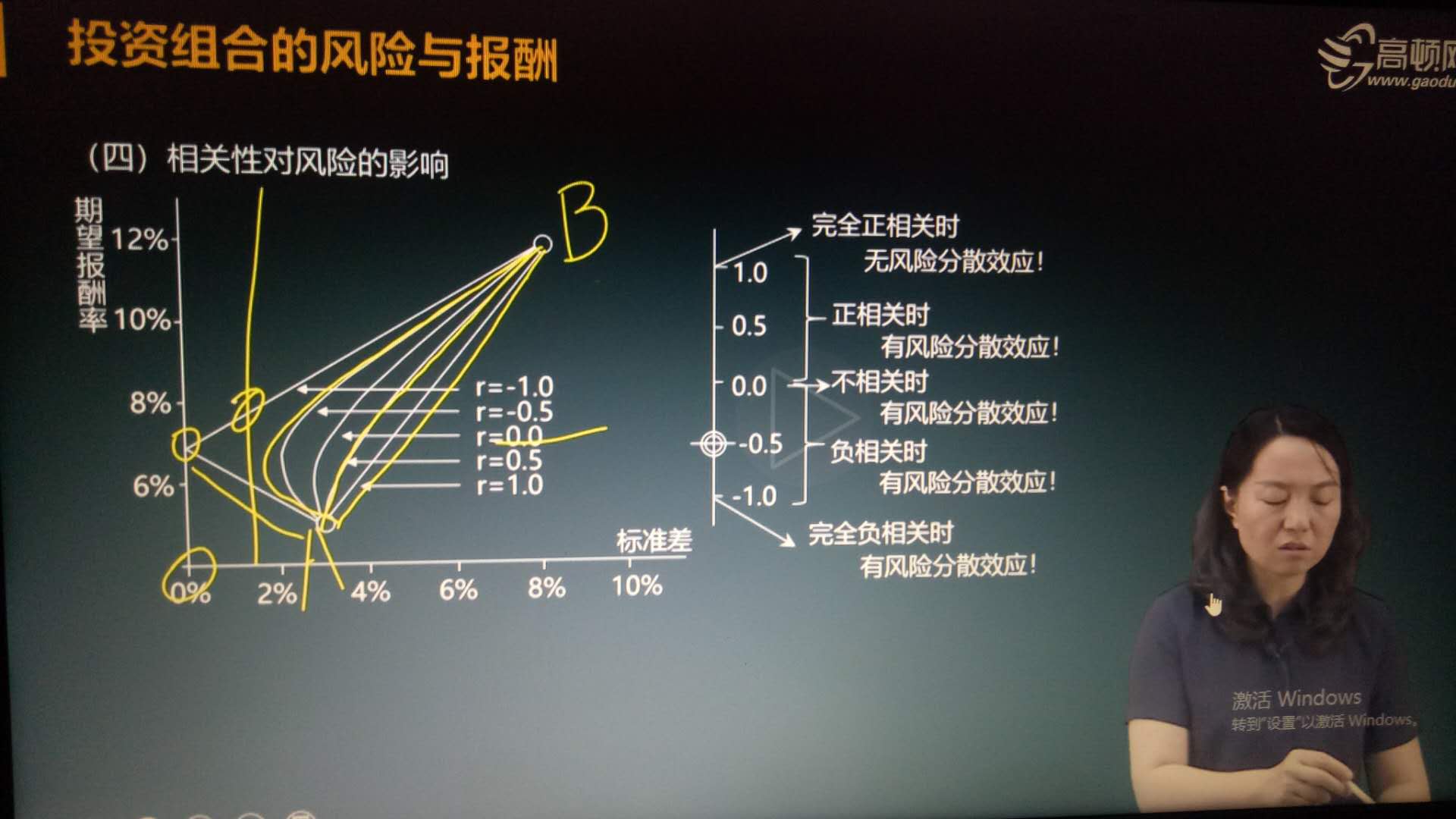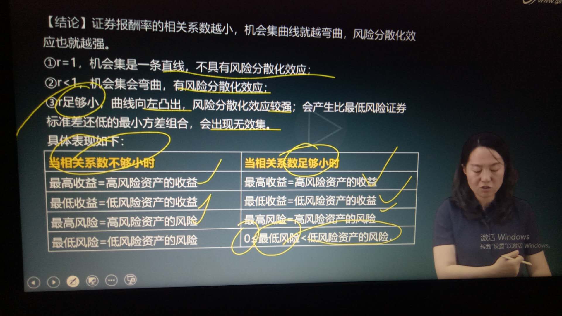 老师,1.请问下第一章图片老师说的是这条线越向左边移动分散风险的能力就越强,意思是这条线越来越靠近期望报酬率那条线才有分散风险的能力,不靠近期望报酬率那条线和就没有分散风险的能力么?2.第一张图片得出的理论知识点和三四张图片的结论是不是一样的么?