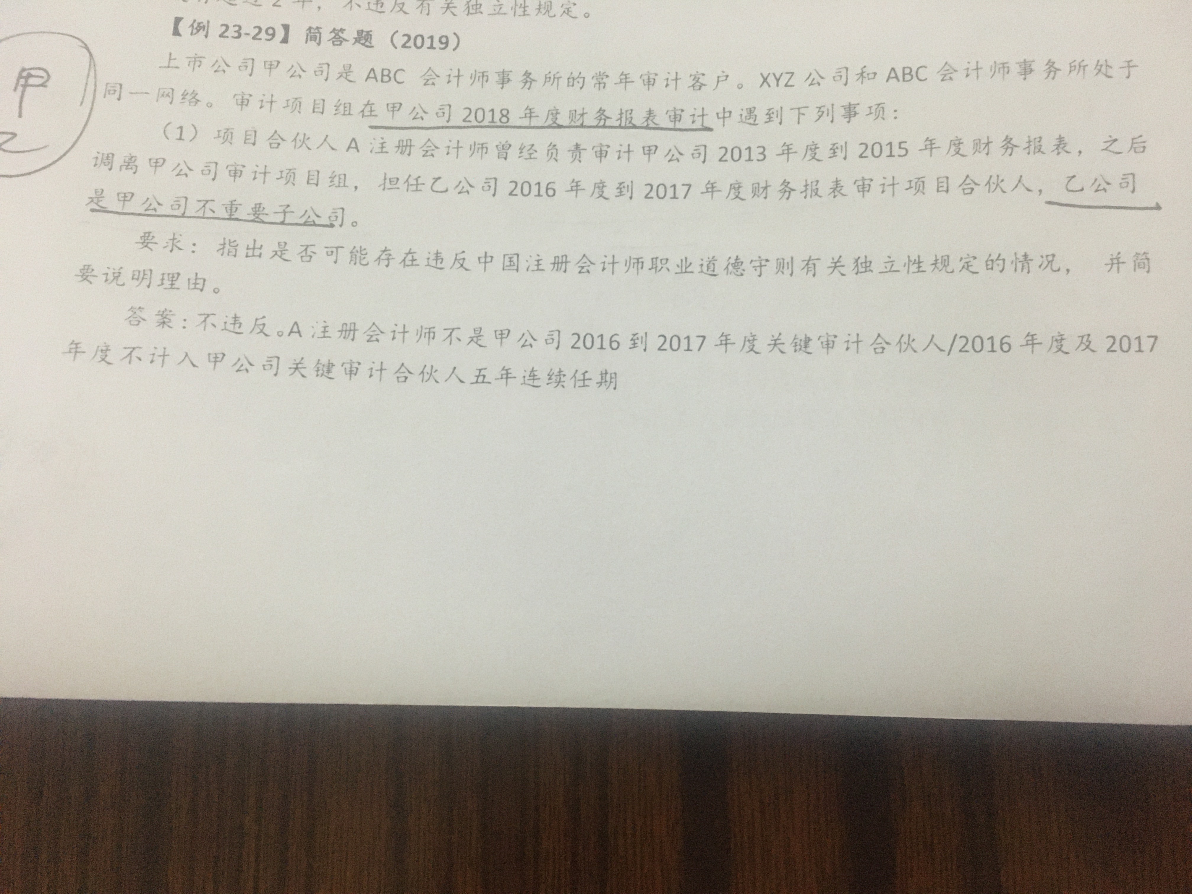 因此给不重要的子公司审计,不算入关键审计合伙人的连续五年任期之内~