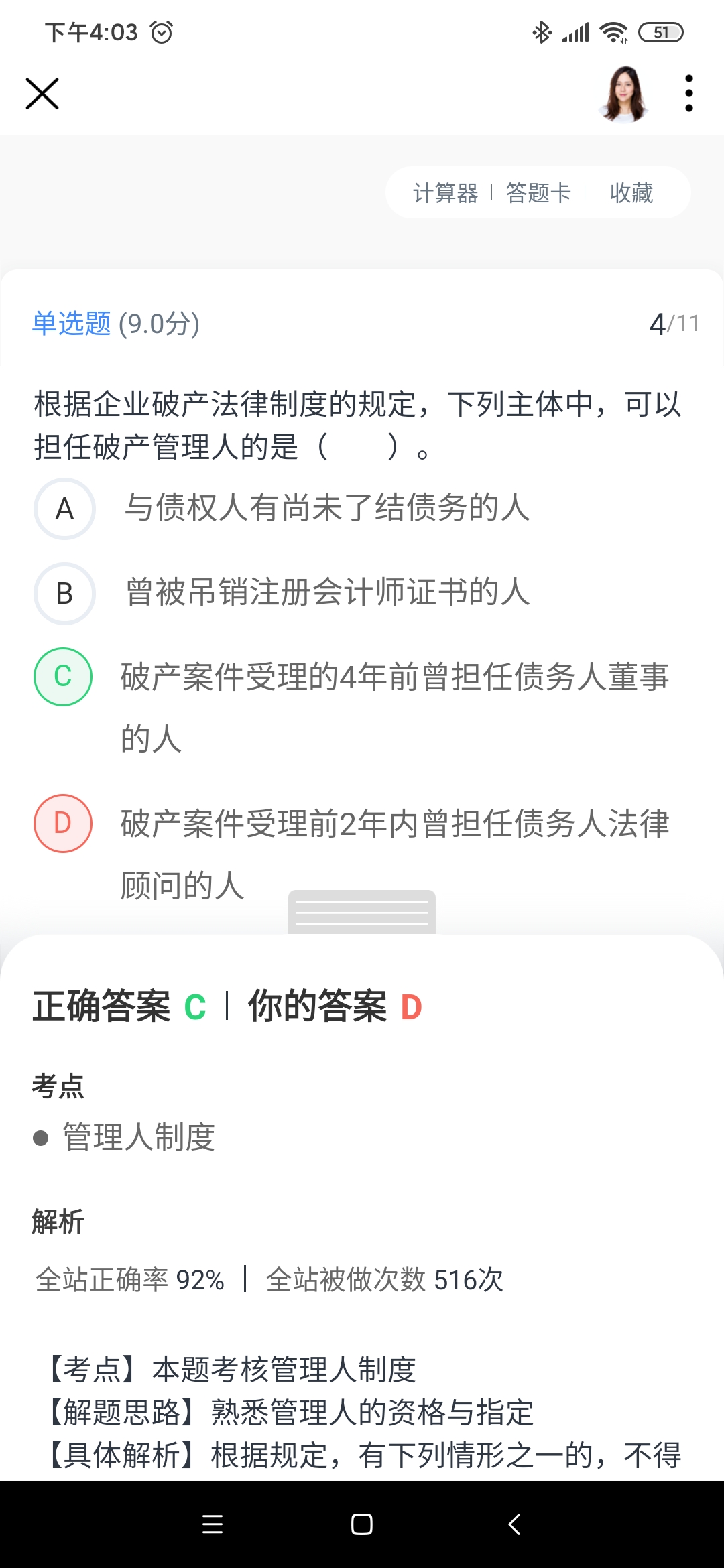 C选项只是说4年前担任董事,但当过董事不代表有利害关系呀,不属于法定的不得担任破产管理人的情形~