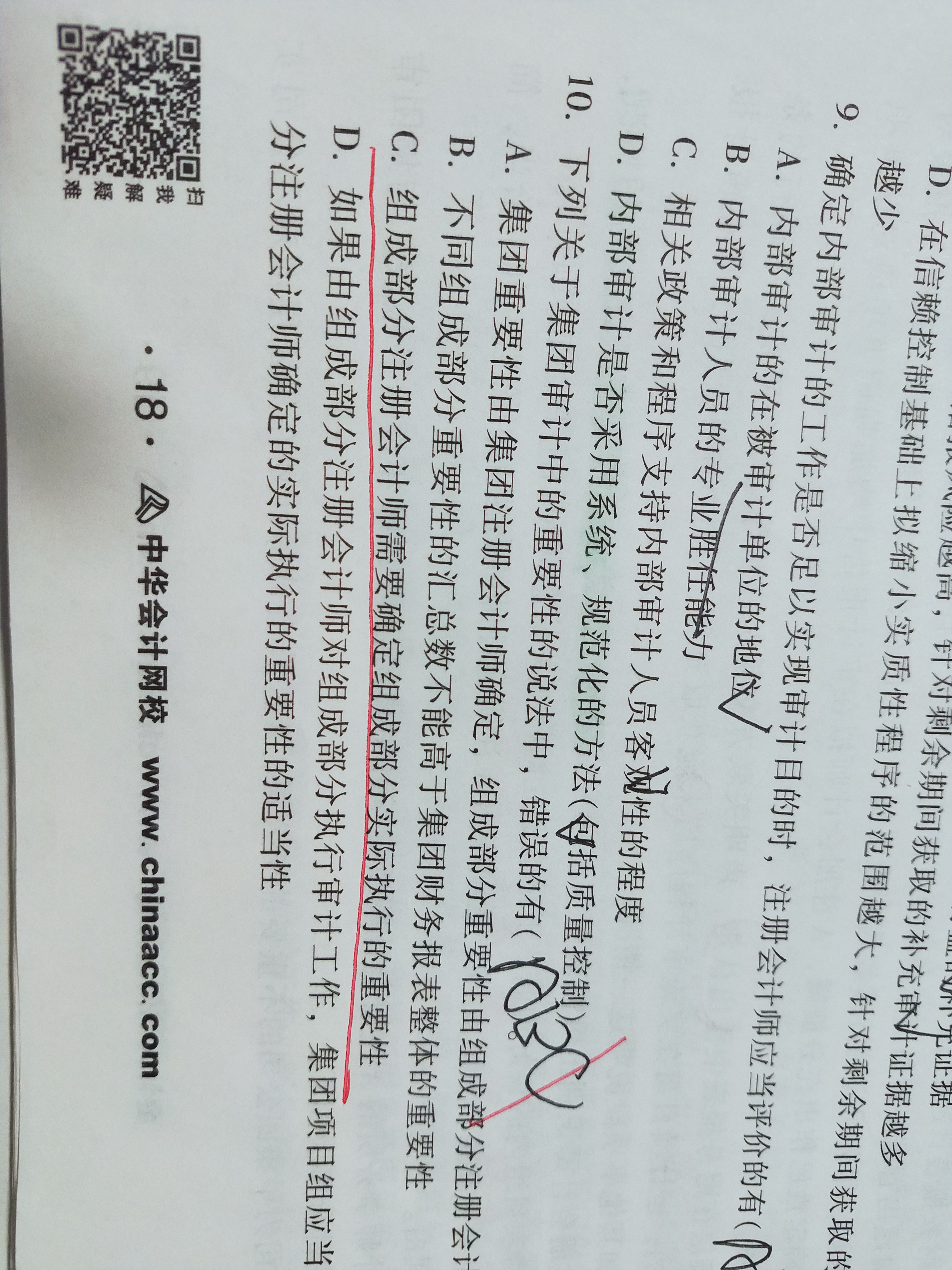 W同学老师审计押题密卷第88页第4题第4问不应该增加与持续经营相关...