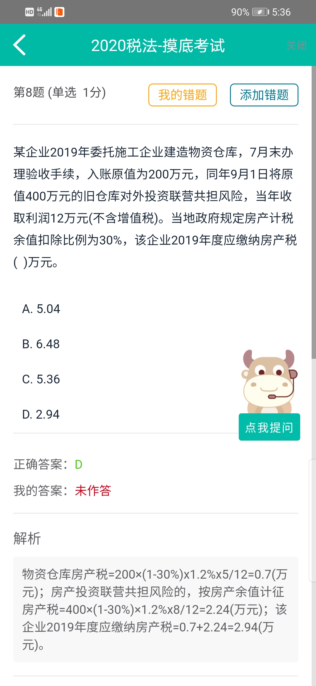 因为共担风险的投资,投资之后是被投资单位计算房产税了,所以这个投资企业缴纳的,只有前8个月的