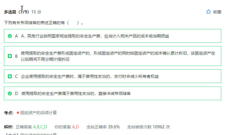 安全生产费使用时形成固定资产的: