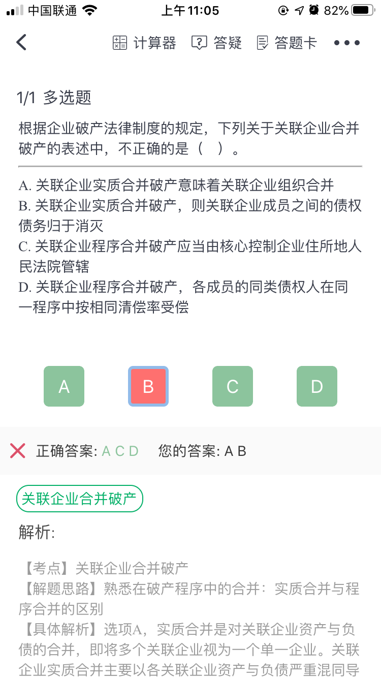 D:程序合并只是程序上一起处理,各个企业还是按各自的清偿率清偿,D 错。