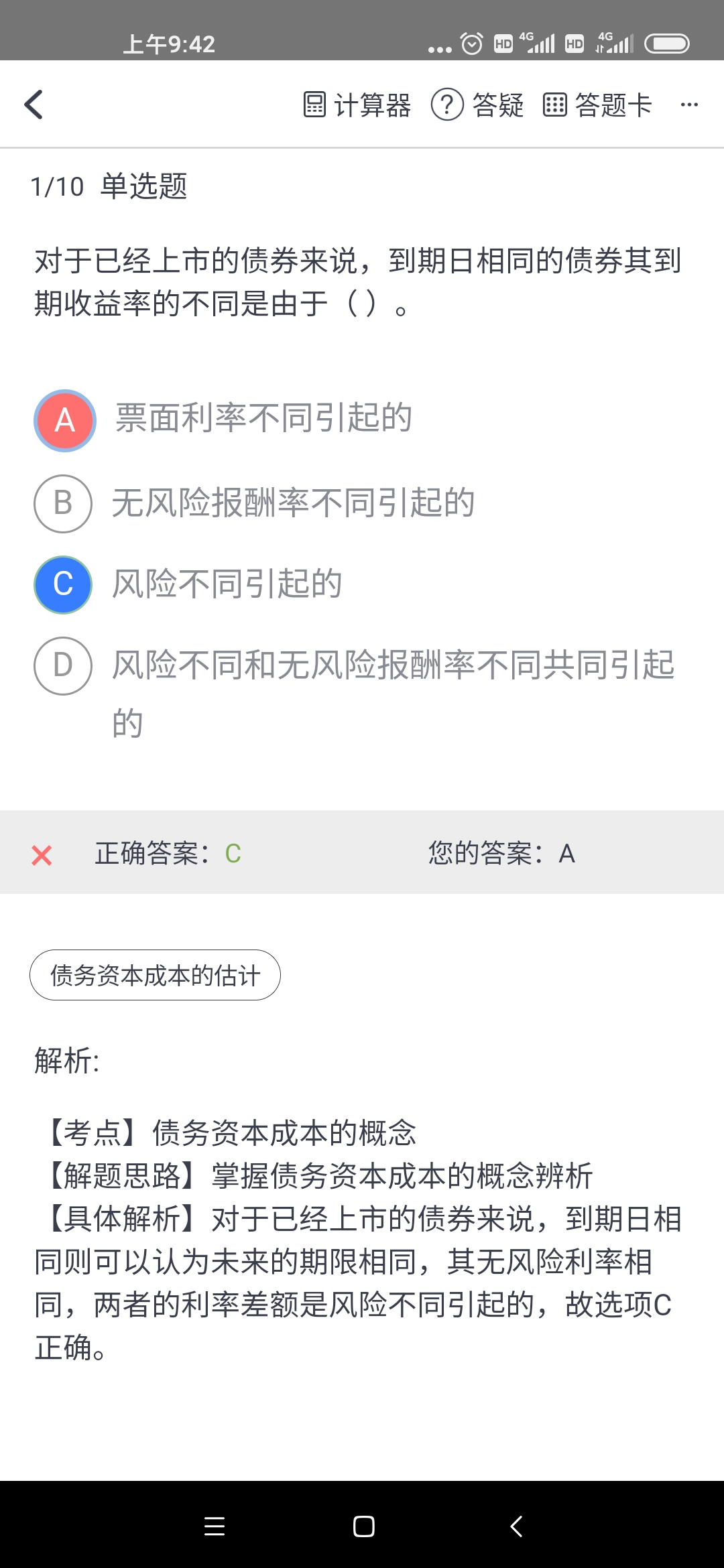 这里是单选题,根本原因还是在于风险的不同,才导致票面利率的不同,最终导致到期收益率的不同哦~