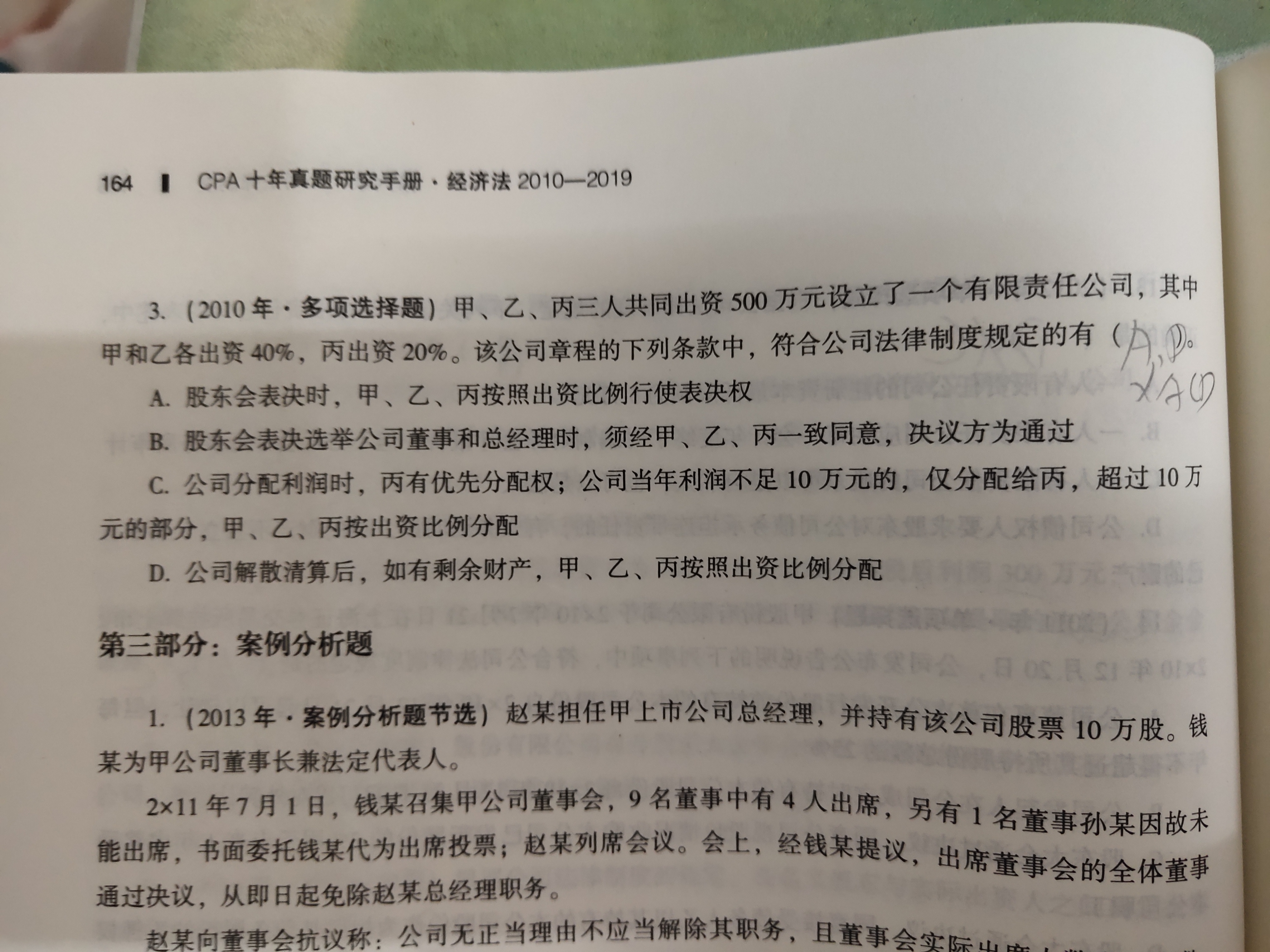 老师,经济法模考01主观题最后一题第三问,难道不是对于利润分...