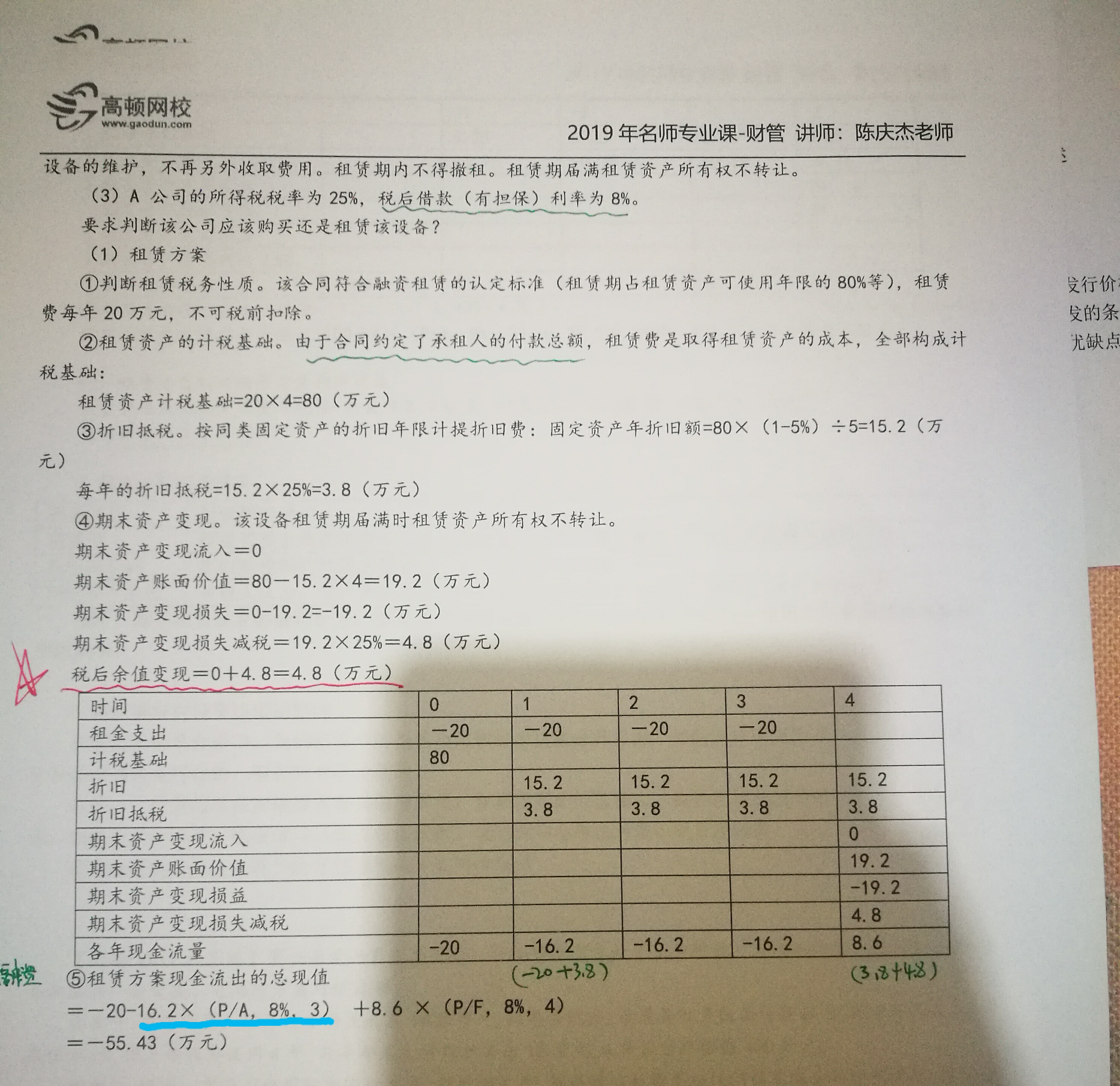 老师 好! 第十章——例题图二标蓝处是否少乘了(1 8%),20万是年初支付,求解,谢谢