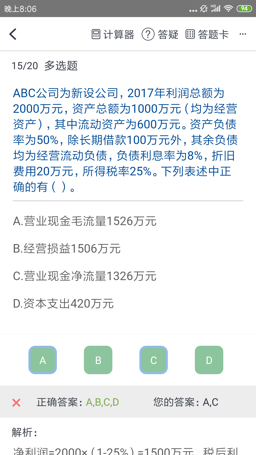 老师,您好,单选第5题答案中800-(500-300)没懂...