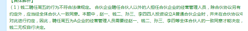请问老师这题的第一小问,是因为聘任合伙人以外的人担任合伙企业的经营管理人员需要全体合伙人一致同意,还是因为对普通合伙企业中未对决议表决做约定时,需要经全体一致同意才能通过?