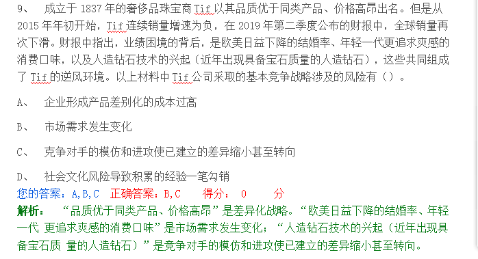 因为该企业实行差异化战略,能过让企业亏损的原因就是差异化战略不够有用,所以选择A选项。
