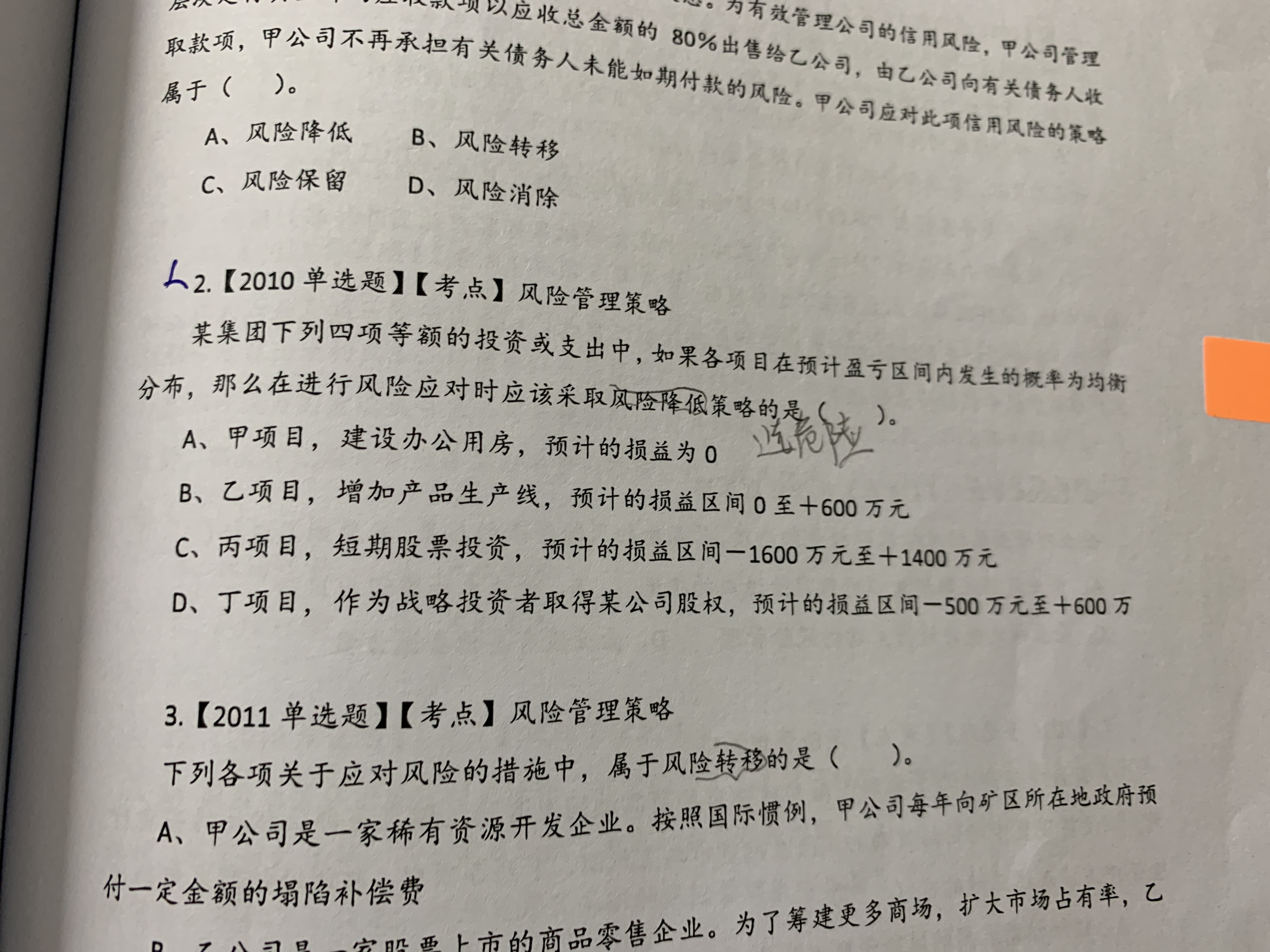 老师,你好.第2题,为什么选C呀,风险降低是什么意思呀