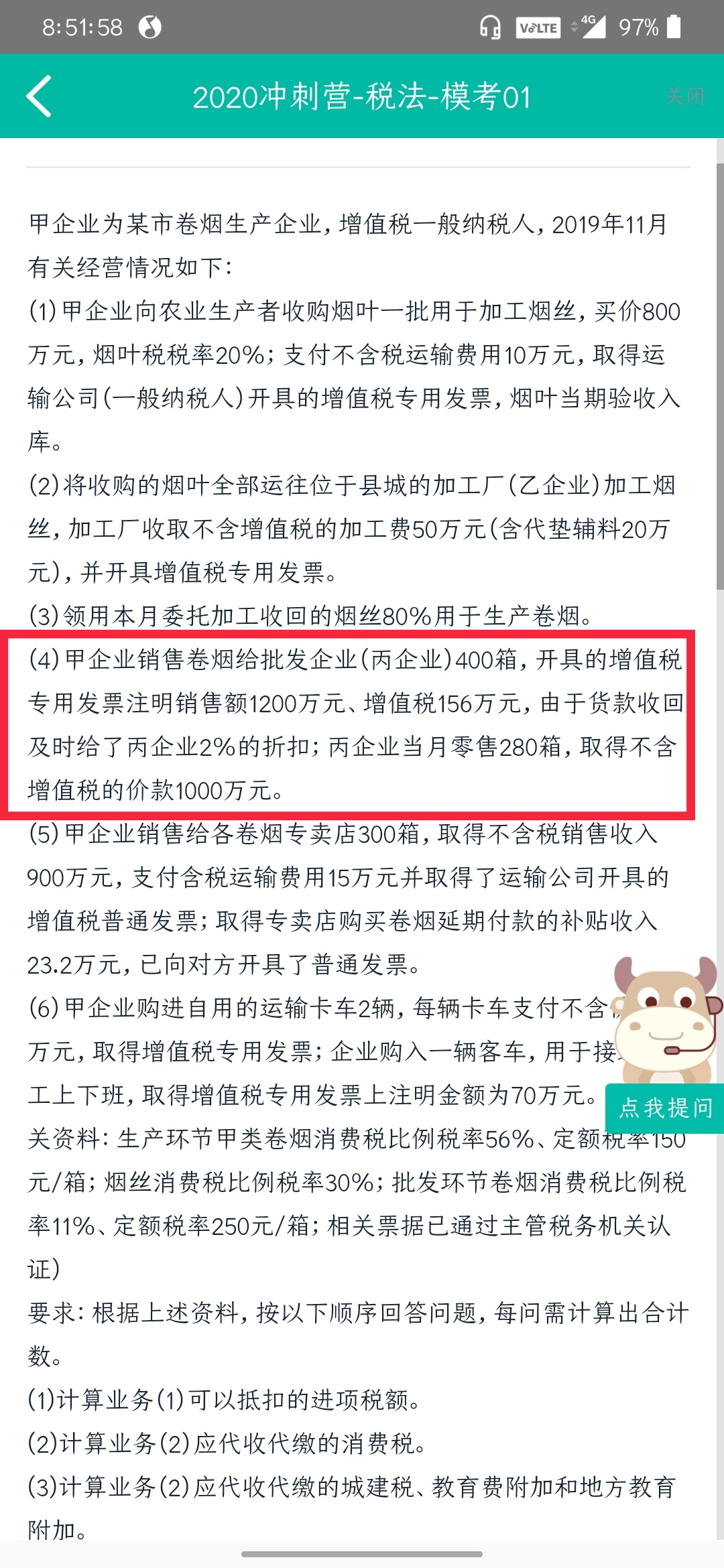下面这个题目的第四问,小汽车不是生产环节交消费税吗,为什么是...