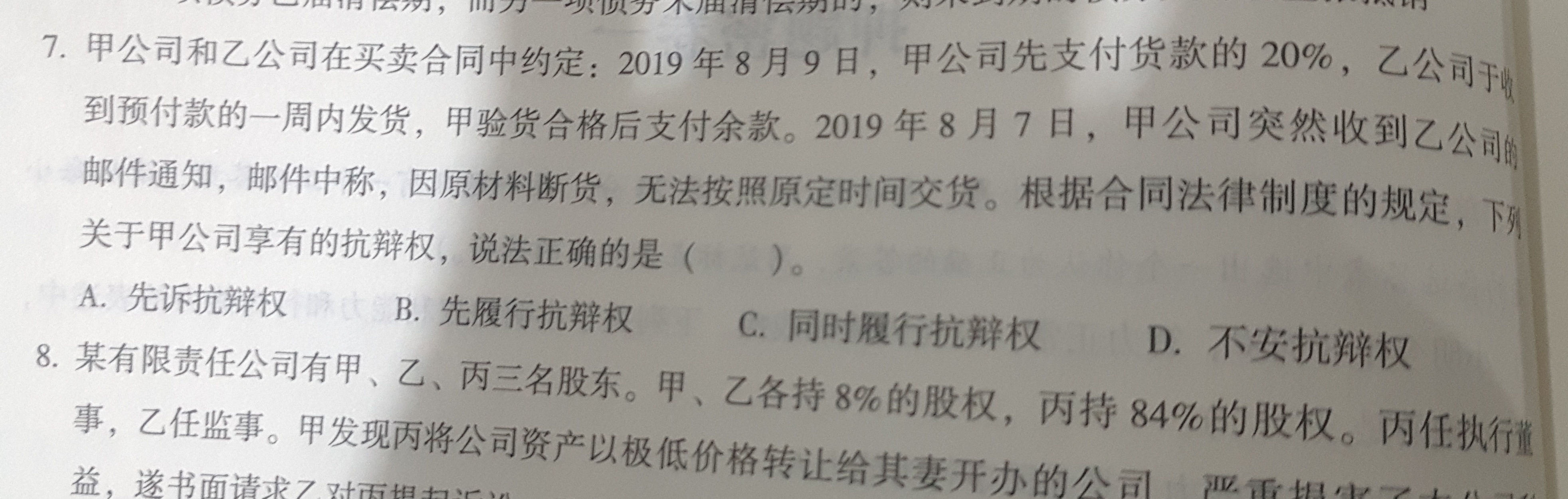老师,这个应该是不安抗辩权吧?答案选的是C选项,解析可说的是不安抗辩权。