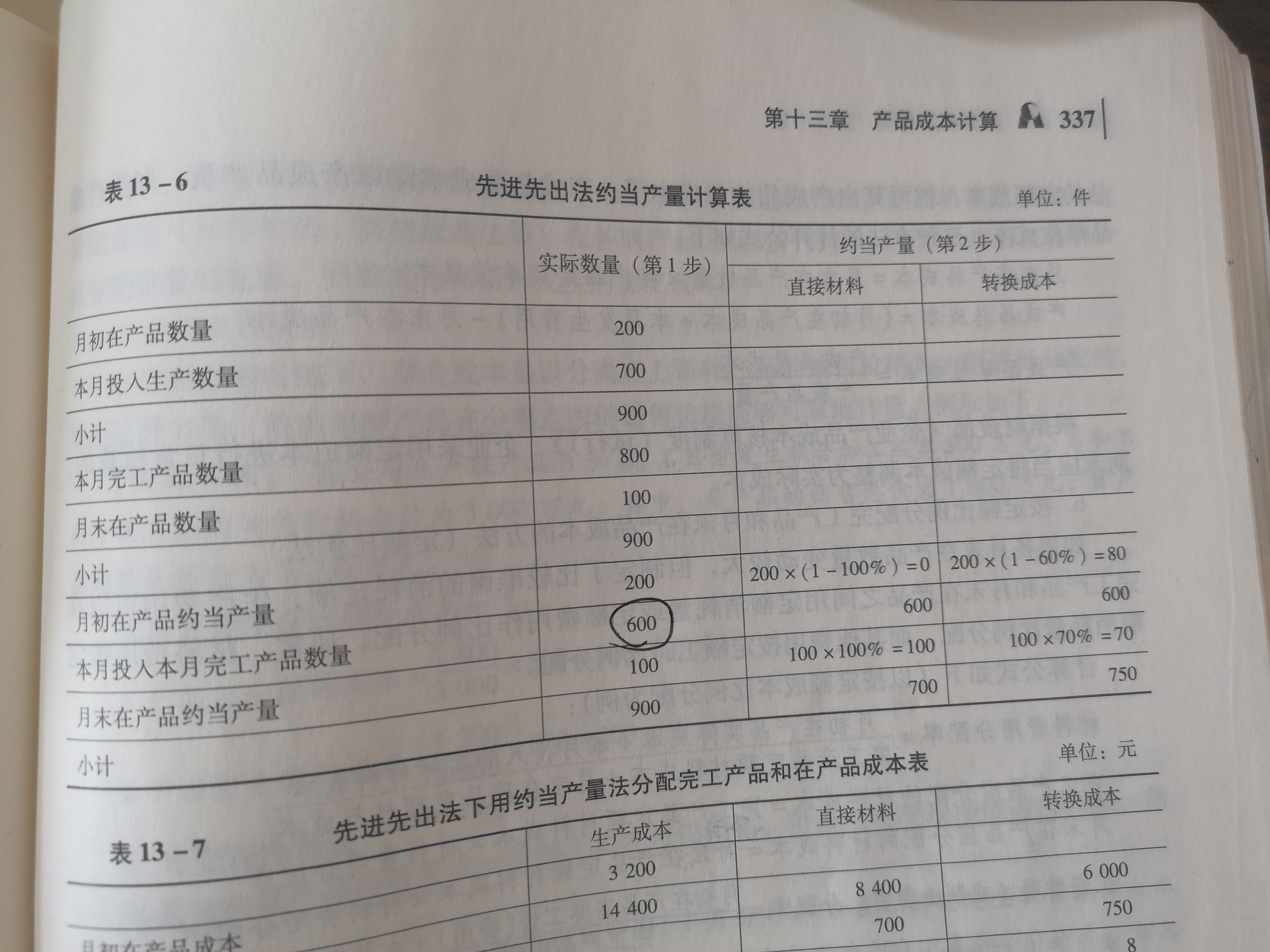 这个600怎么来的呀老师?本月投入本月完工不应该是700吗