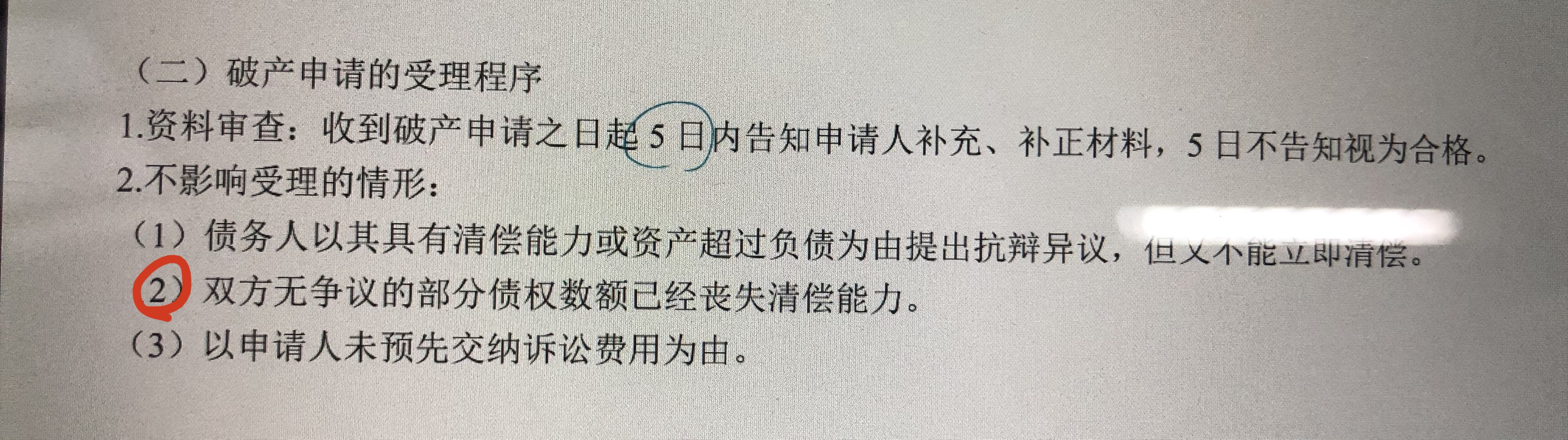 比如甲企业是债务人,乙企业是债权人,甲说自己只欠乙100万,乙说甲欠了200万,他们俩没有争议的是100万,如果这100万甲都还不上,那么甲的破产申请就可以受理了。