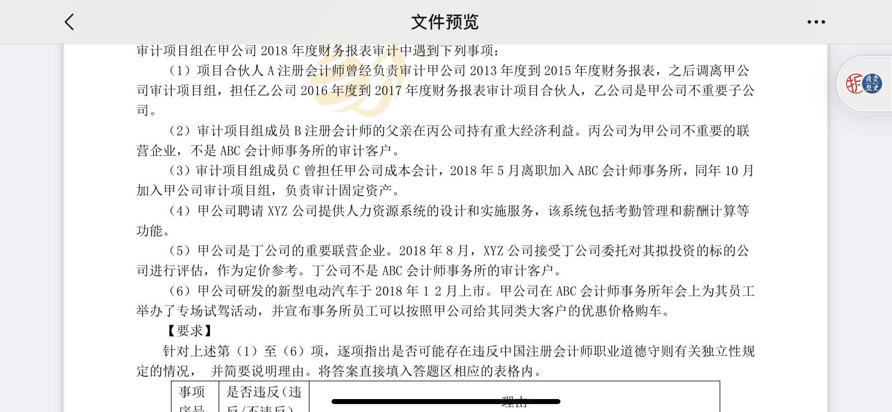 这里提供的是非鉴证业务,非鉴证业务主要是看是否承担管理层责任哦,这个提供定价参考,不承担管理层责任哦,就不会对独立性产生影响的。对于6,你这说也是我们分析的情形,但是不属于接受客户的礼品,接受礼品是不付出对价的哦,这里主要还是为了推销哦,你可以分析的时候这么说但是不能写在试卷上哦,如果还有疑问,请欢迎随时提问哦~