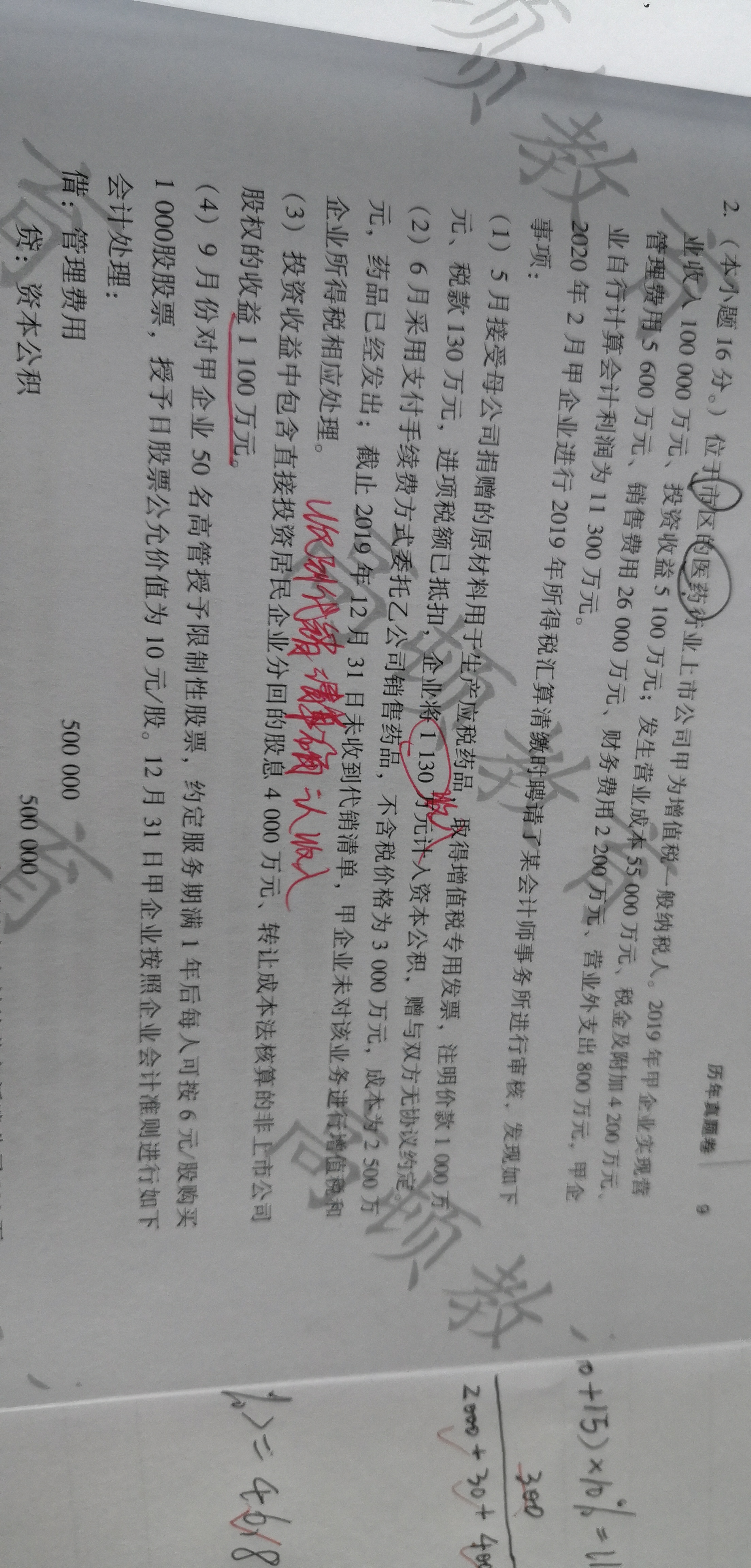 老师‘请帮我解释(1)的企税答案为什么是这个?还有(3)的答...