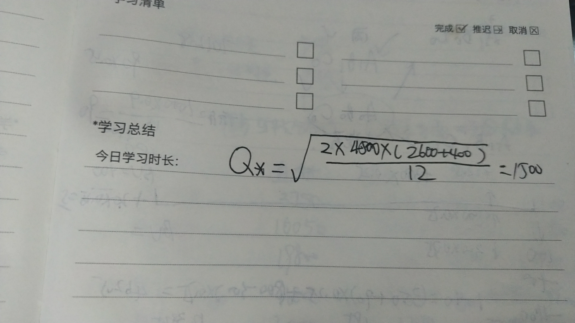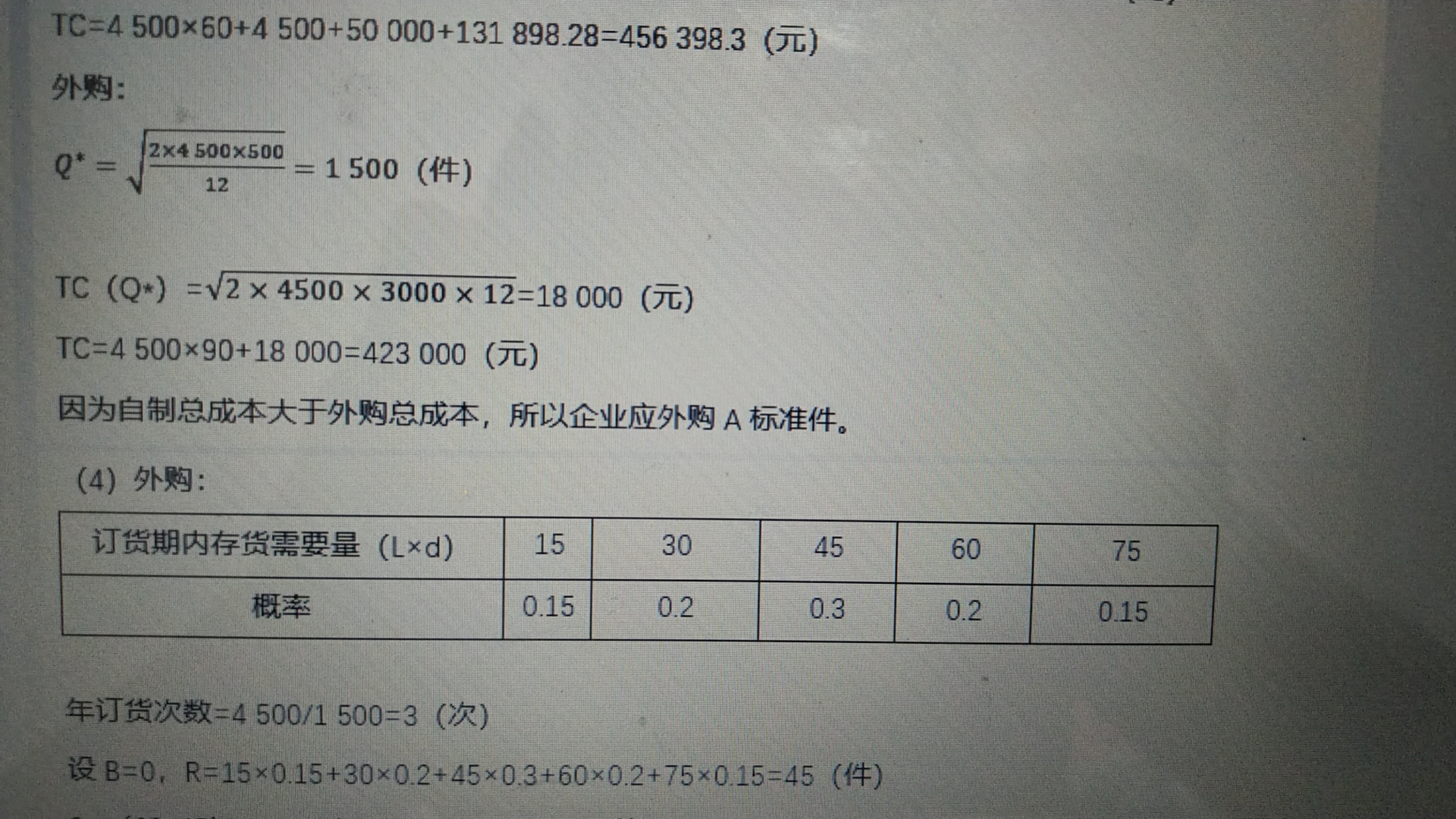 外购的Q=(2*3000*4500/12)^0.5=1500