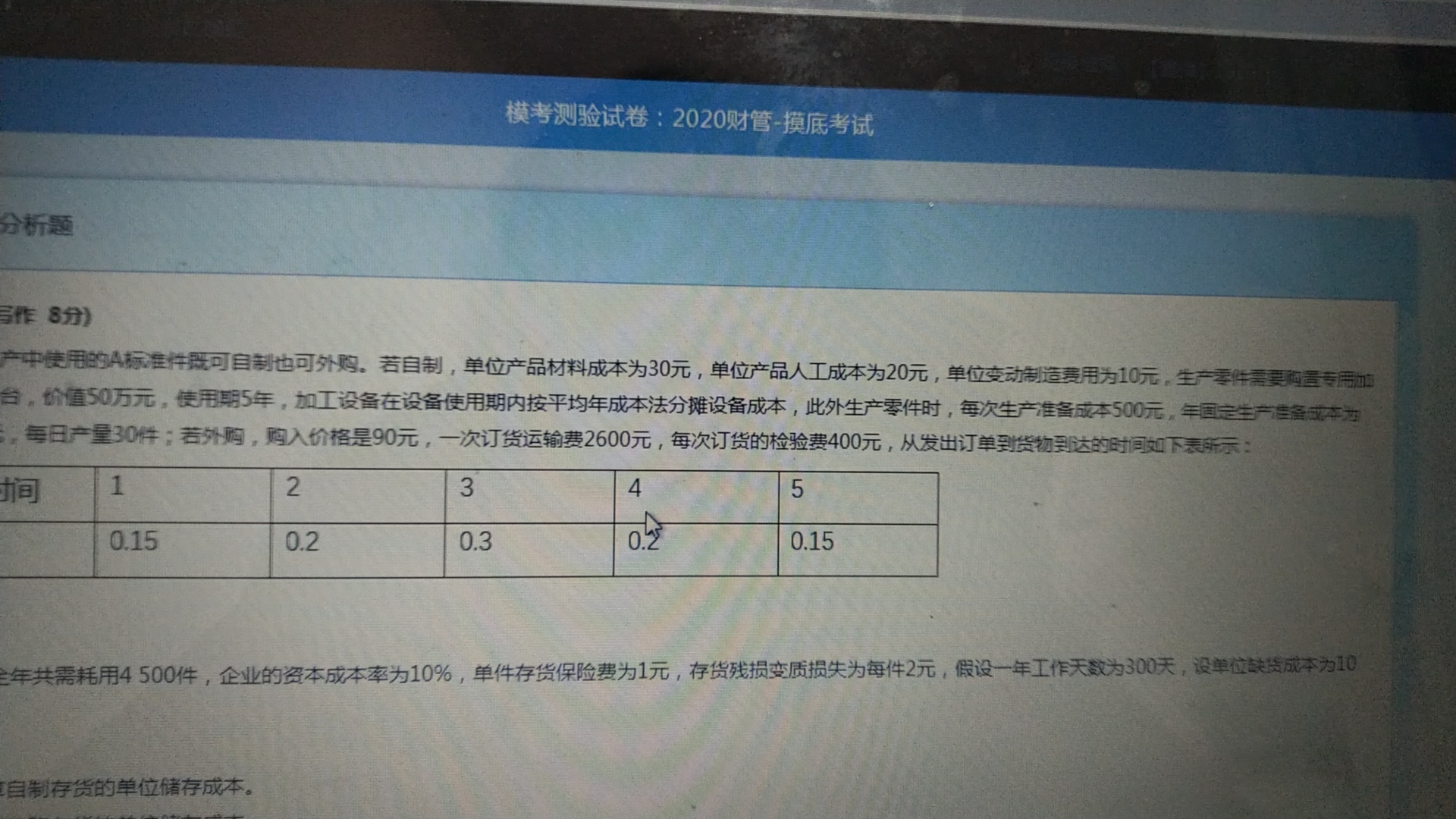老师,我觉得外购的Q应该等余1500.答案应该错了吧,是财管模底考试第四题