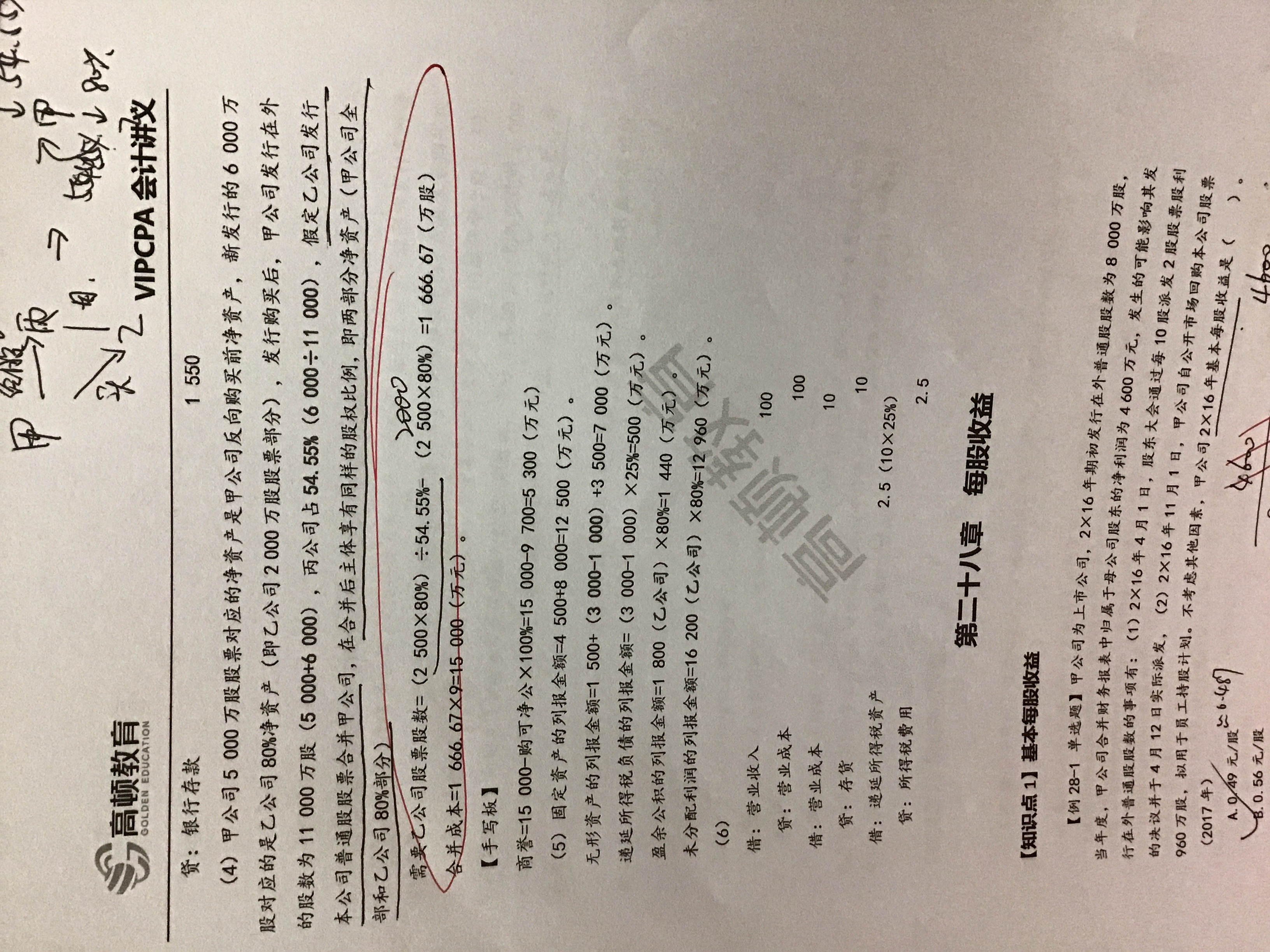 无论是甲公司发行股票给乙公司的股东,还是假定乙公司发行股票收购甲公司,那么都需要维持一个控股股东的股权结构,即控股股东在新的实体中的股权比例是54.55%,不然控股股东怎么能构成反向购买了