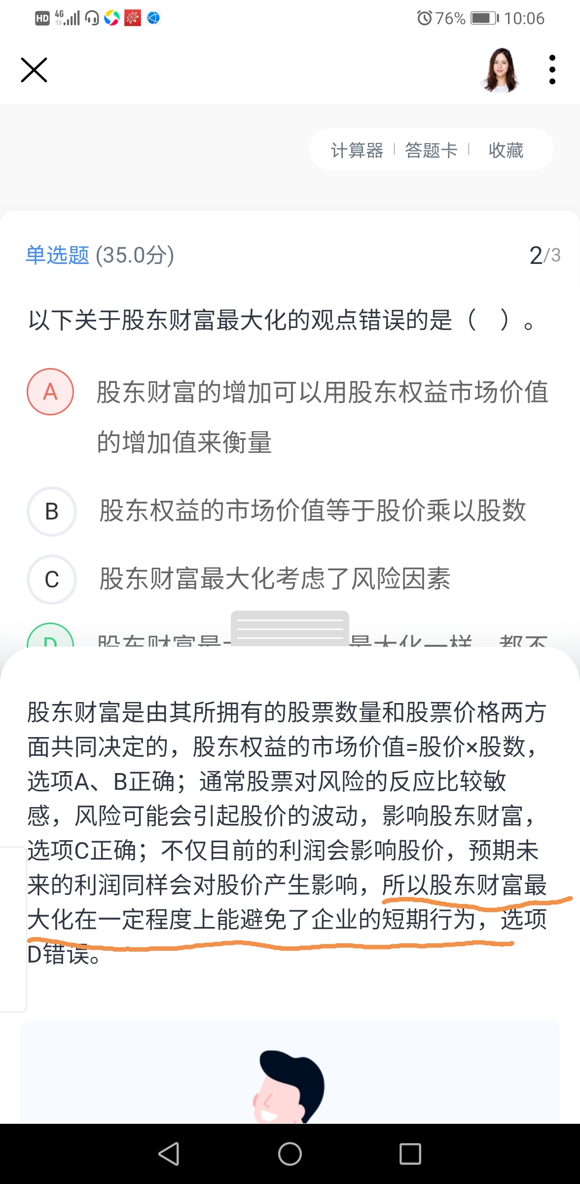 老师,画横线的部分应该怎么理解?为什么可以避免企业的短期行为呢?