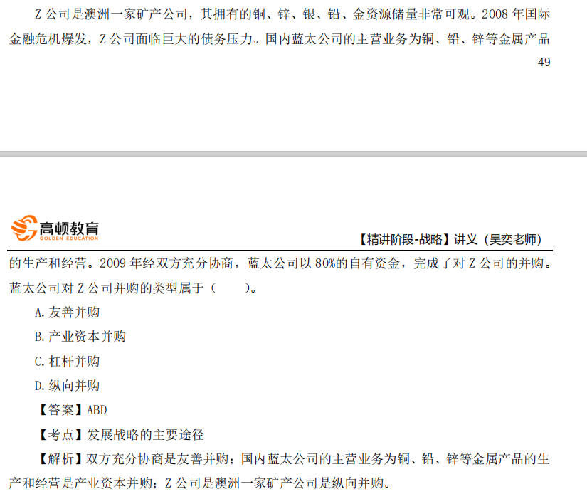 老师请问这题为什么选D?不应该是横向一体化吗?