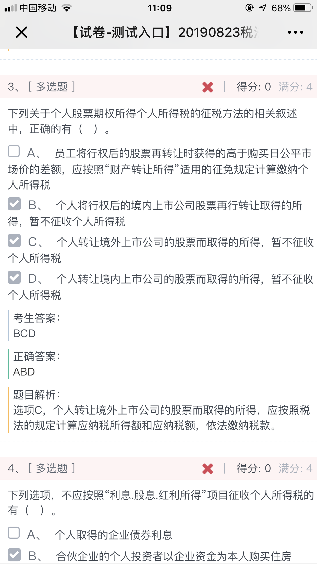讲义上说,个人转让股权暂不缴纳个税,没有说境内还是境外,那么选项C为什么不选呢?