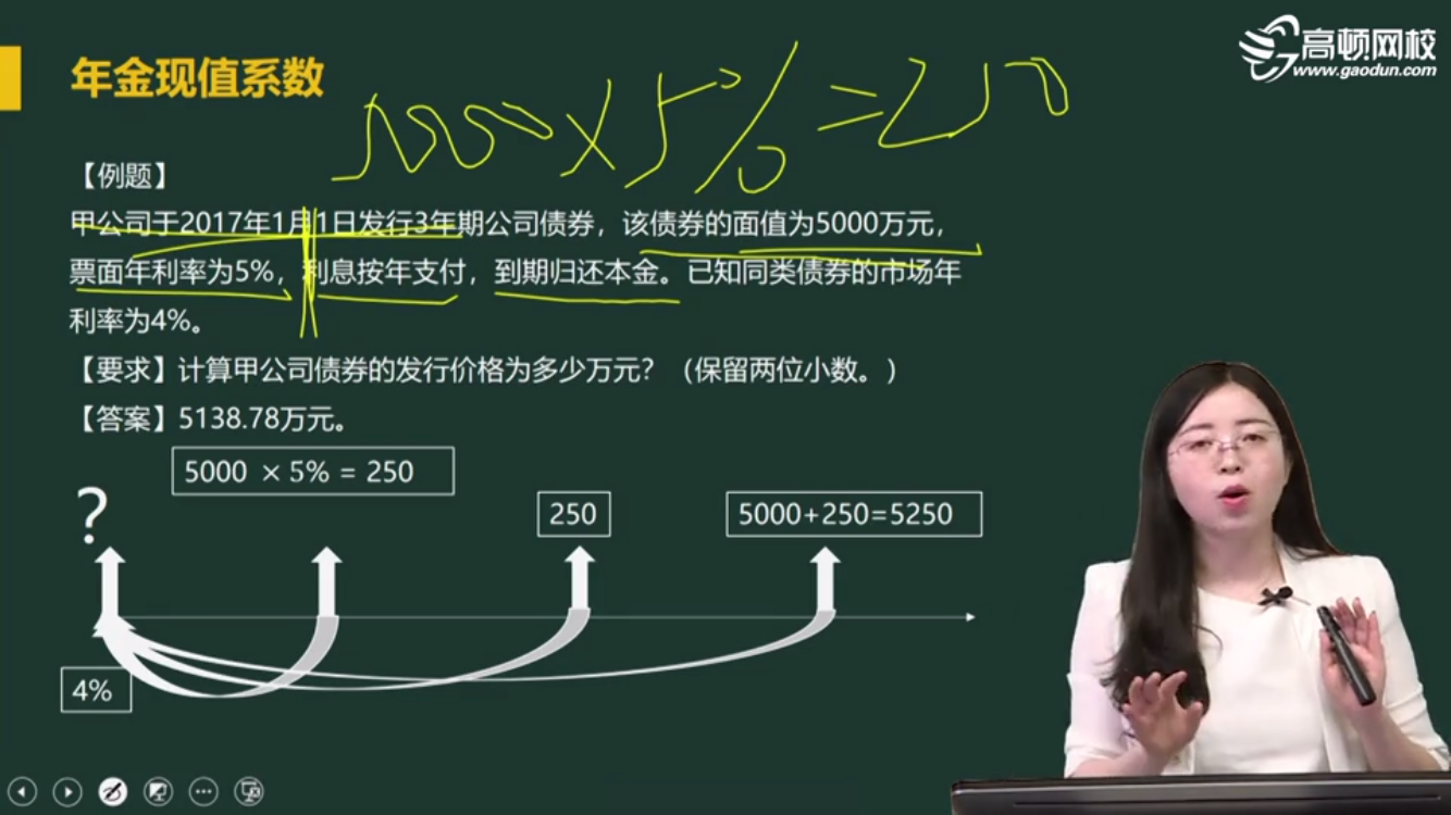 这里为什么算每年的利息250万元时用5%,算未来3年需支付的利息时用4%?
