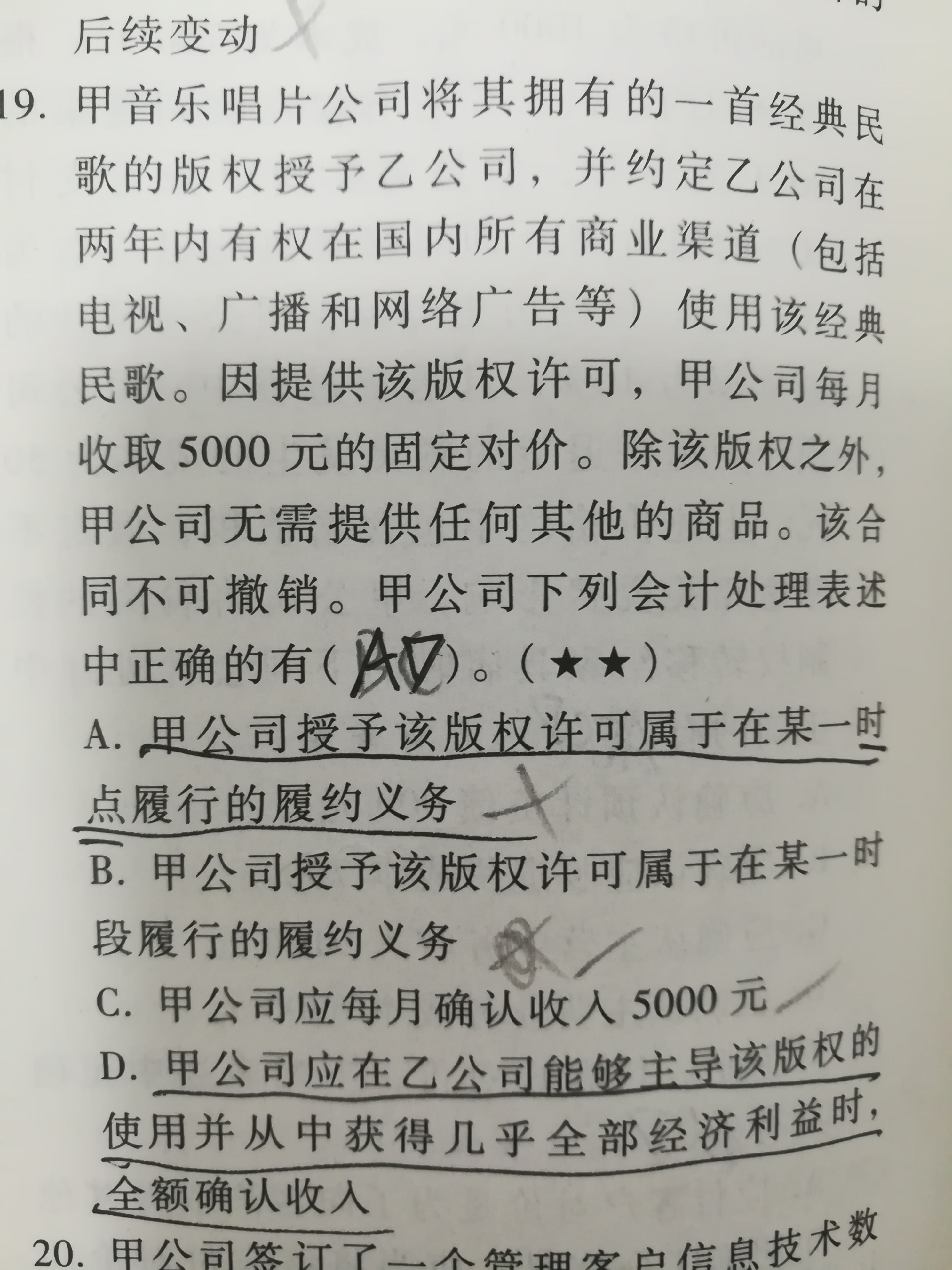 会计单选题怎么能选AB?考题答案出错了?...