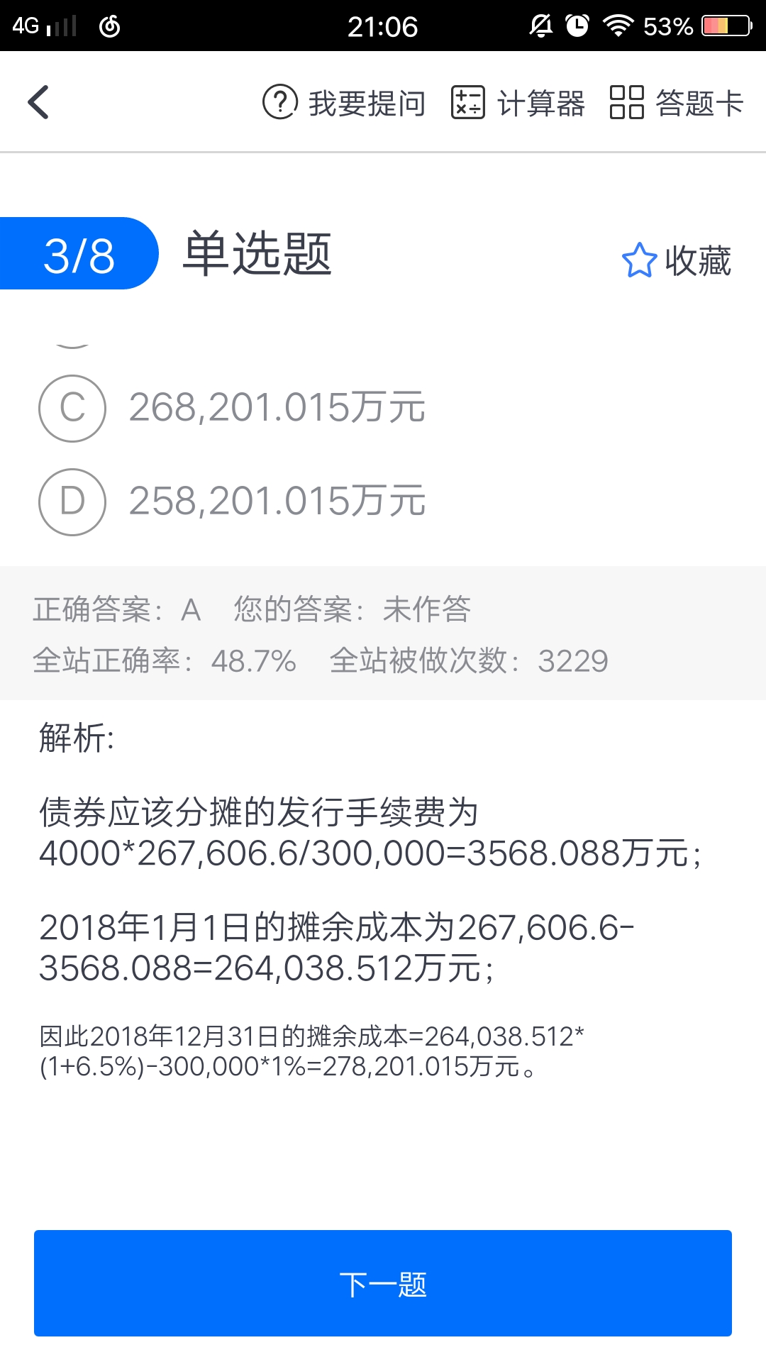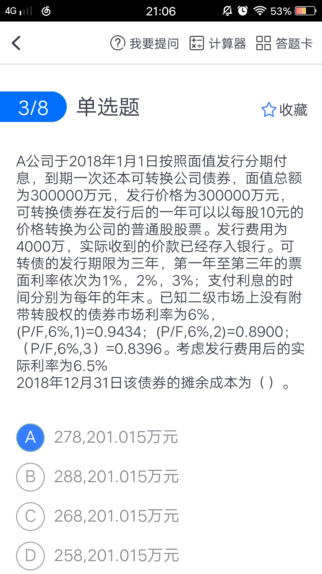 请问老师 这题算出来是4256.64 问什么答案选A 没明白...
