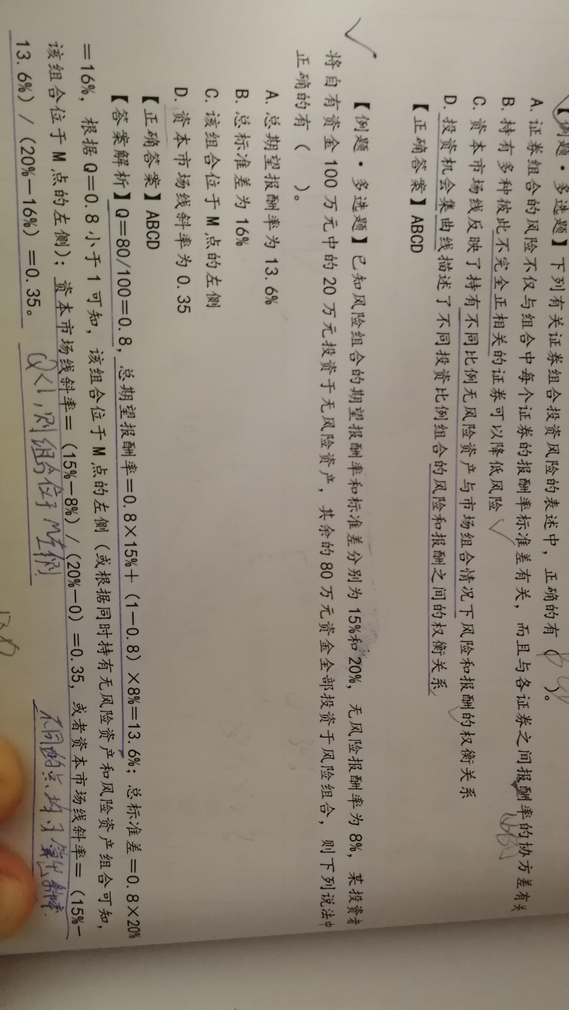 老师 好!图中题不明白选项D为什么不正确?风险最小期望报酬率...