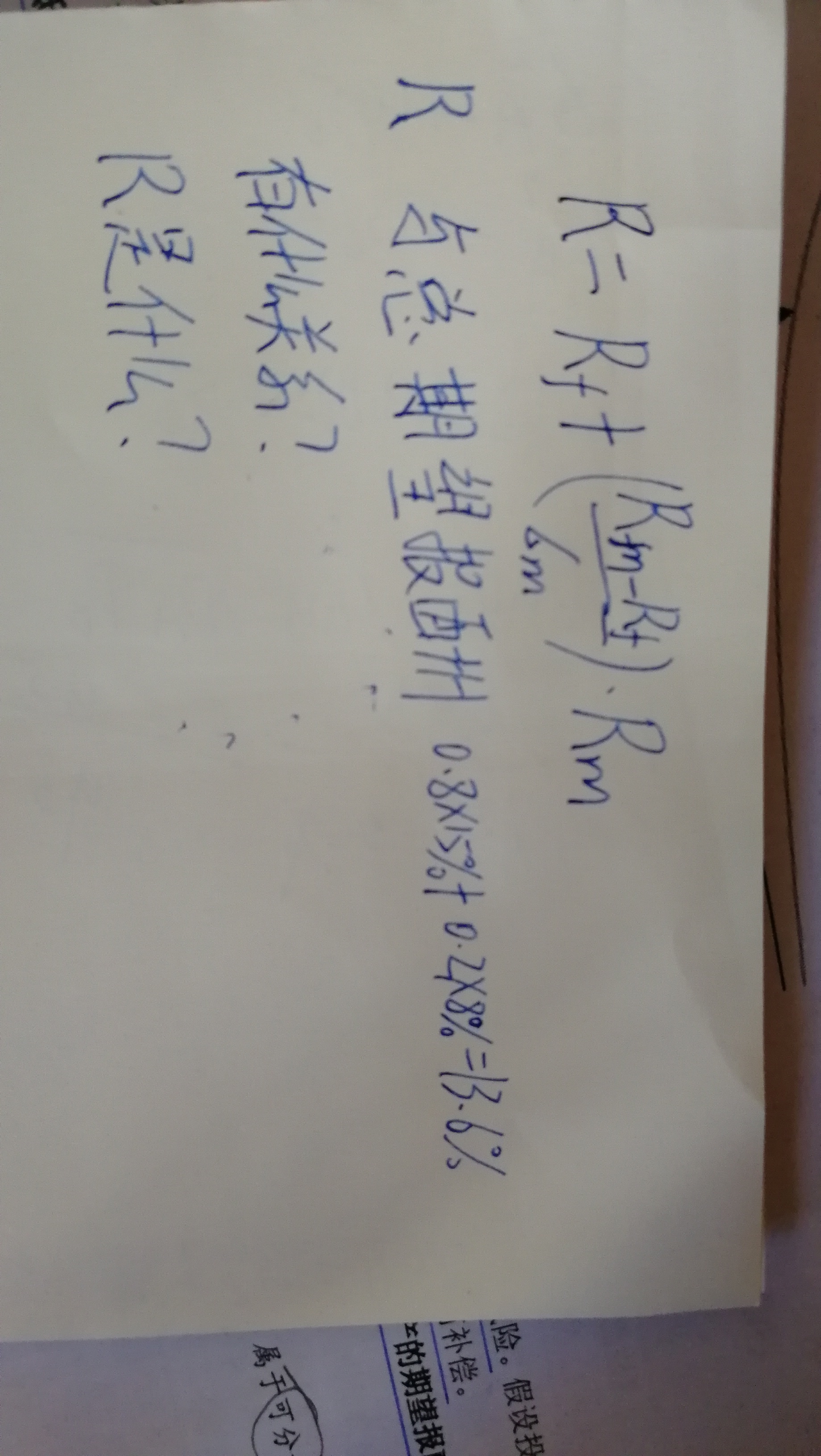 同学的答案中R代表的是单项资产的期望报酬率,将几项资产进行组合,考虑其自身的权重,进行加权就是总期望报酬率。