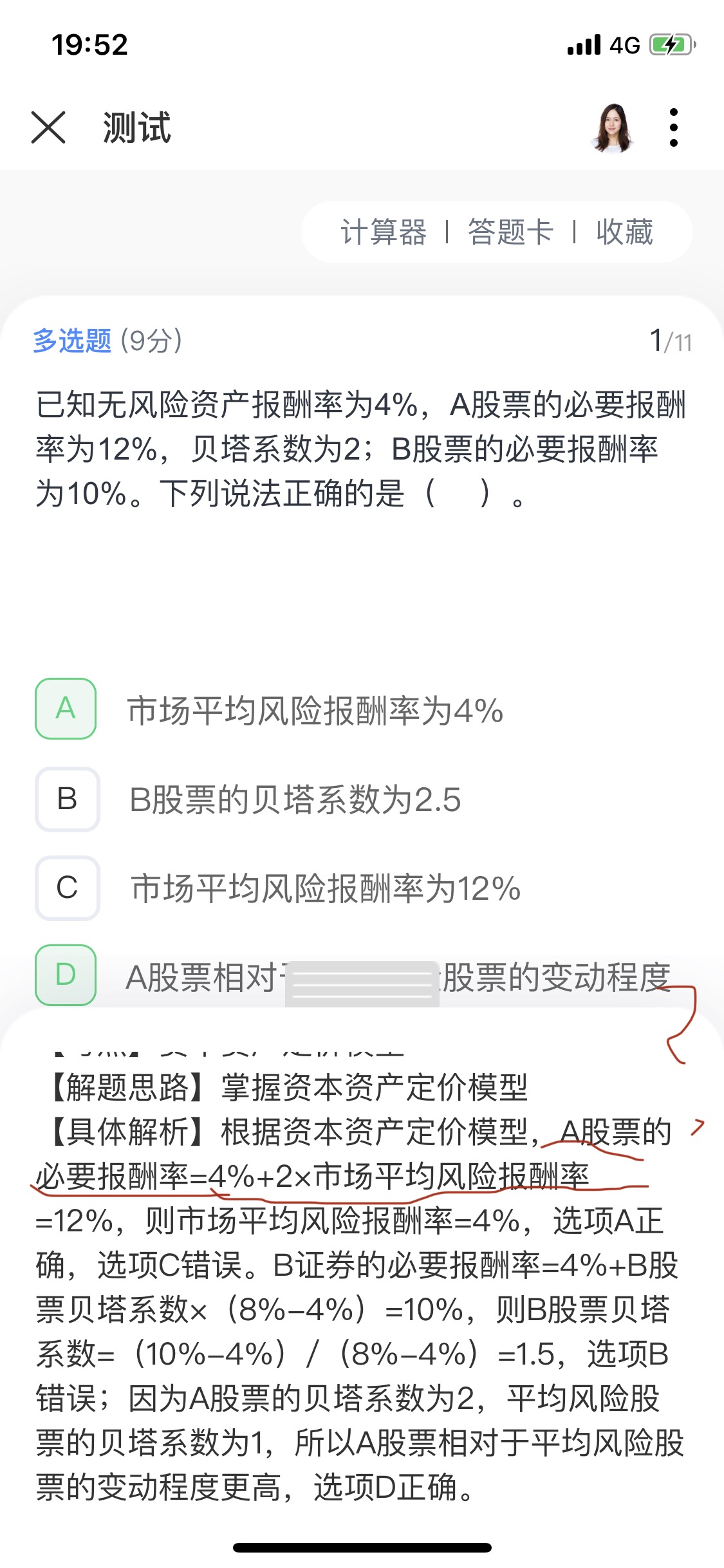 图中红线标记? 必要报酬率=无风险报酬率+贝塔系数(市场平均报酬率-无风险报酬率) 为什么题目直接用贝塔系数*市场平均报酬率