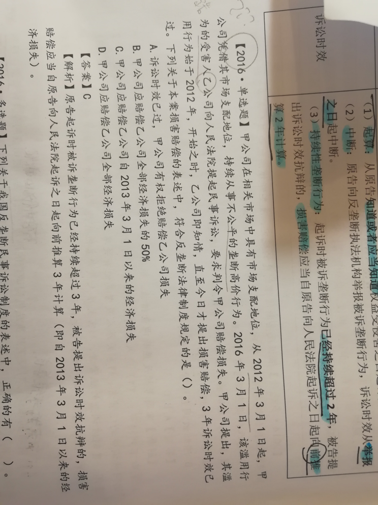 这个是因为教材上对于这个诉讼时效还是按照以前的《民法通则》来编写的,还没改过来,而下面这道题是按照最新的《民法总则》来改的,目前已变成3年,所以导致不一样。对于这种政策有衔接的部分,考试基本是不会考的。所以不用担心。