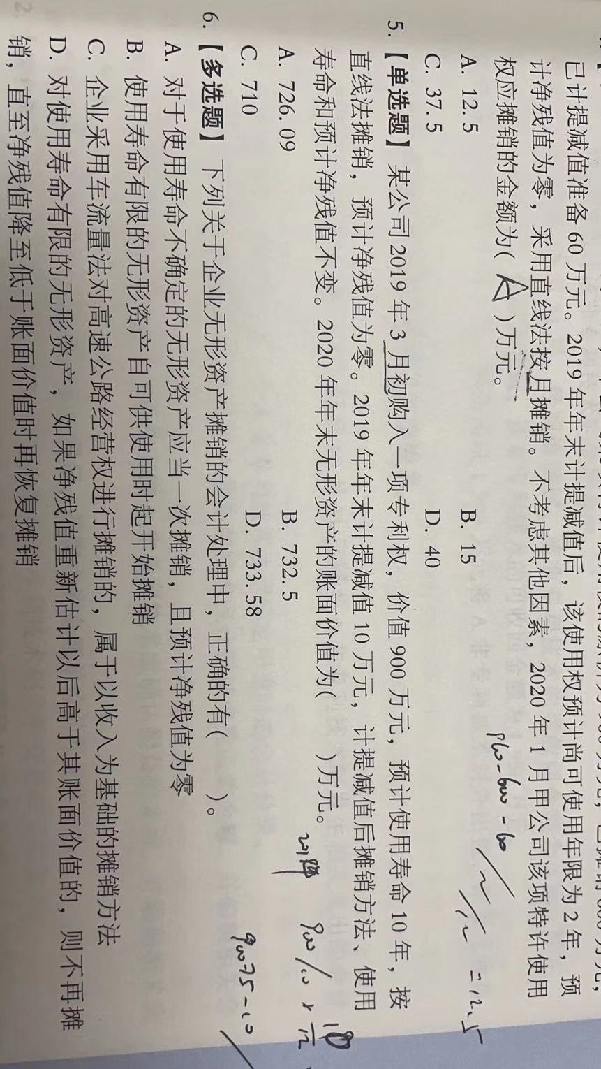 第五题从3月开始摊销,为什么2020年还要考虑减值的那两个月?