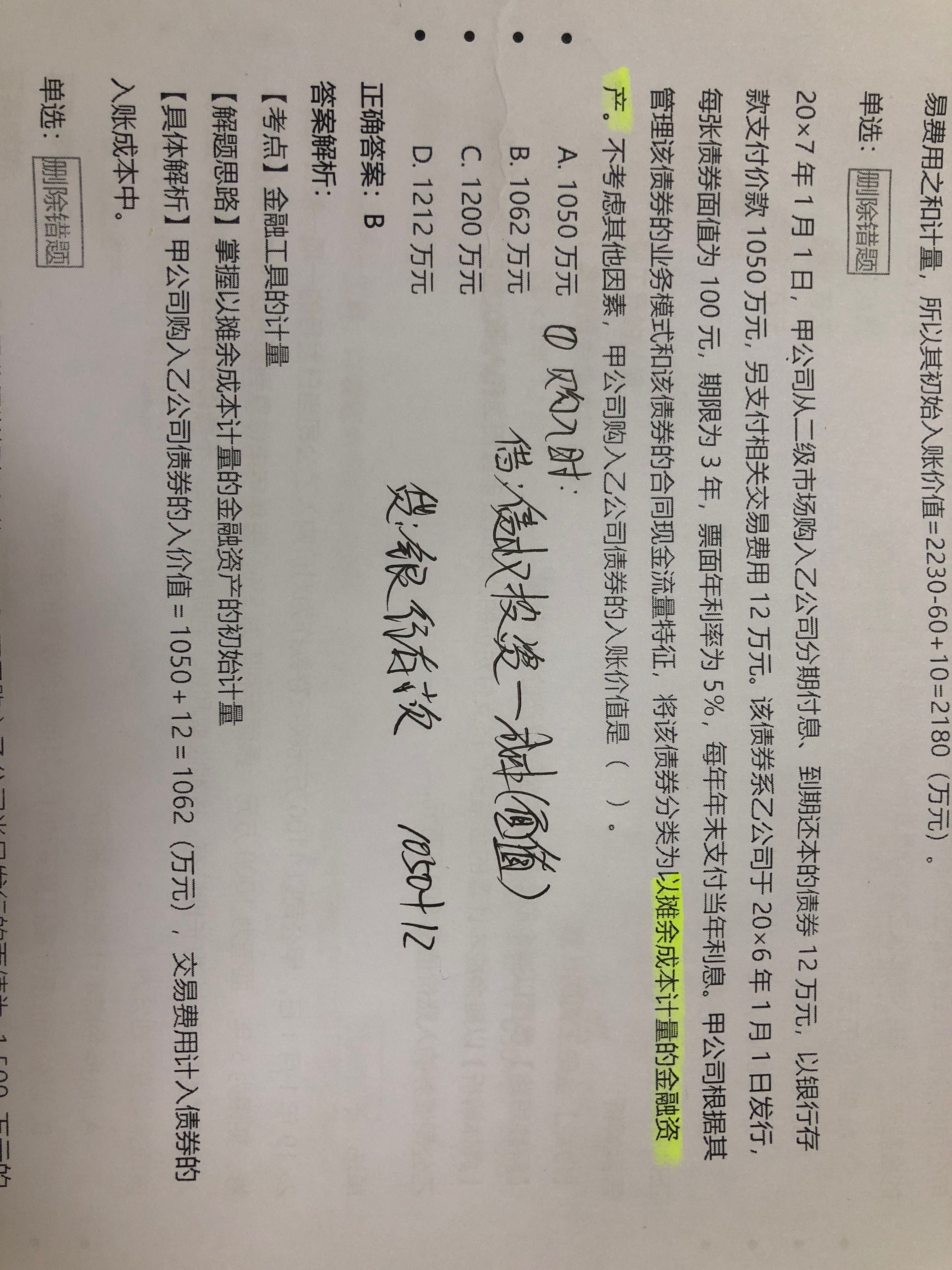 本题题目条件没有告诉多少份债券,应该是需要勘误的题目,请问同学这道题出自哪里,老师这边核对一下。