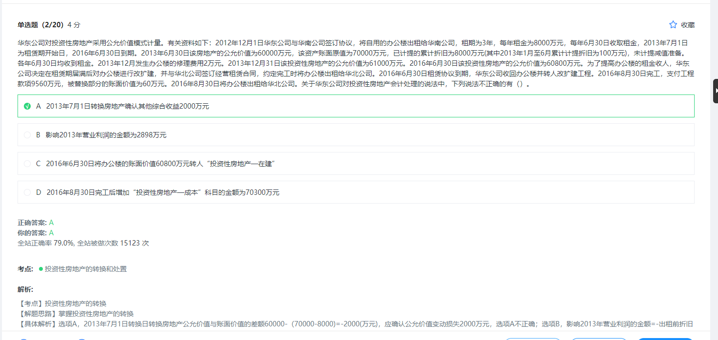 (5)2013年12月31日该投资性房地产的公允价值为61000万元