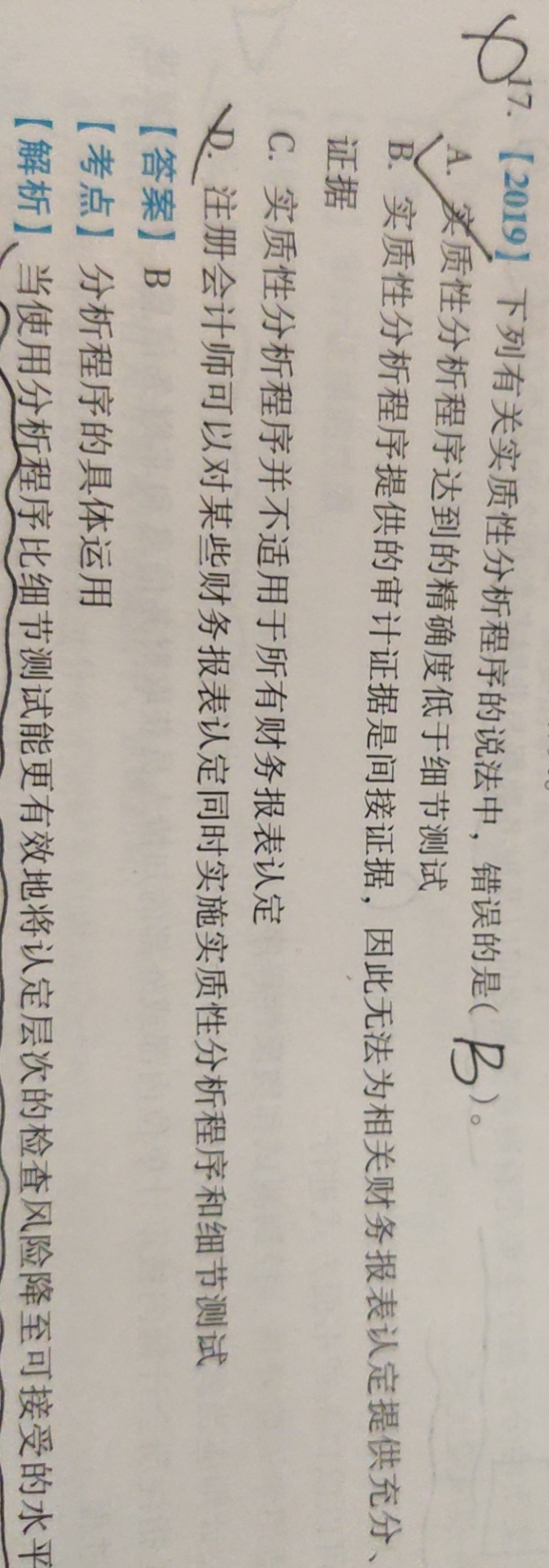 老师好 大蓝本不是说 分析程序和细节测试不具有可比性吗?为什么A选项说法正确呢?