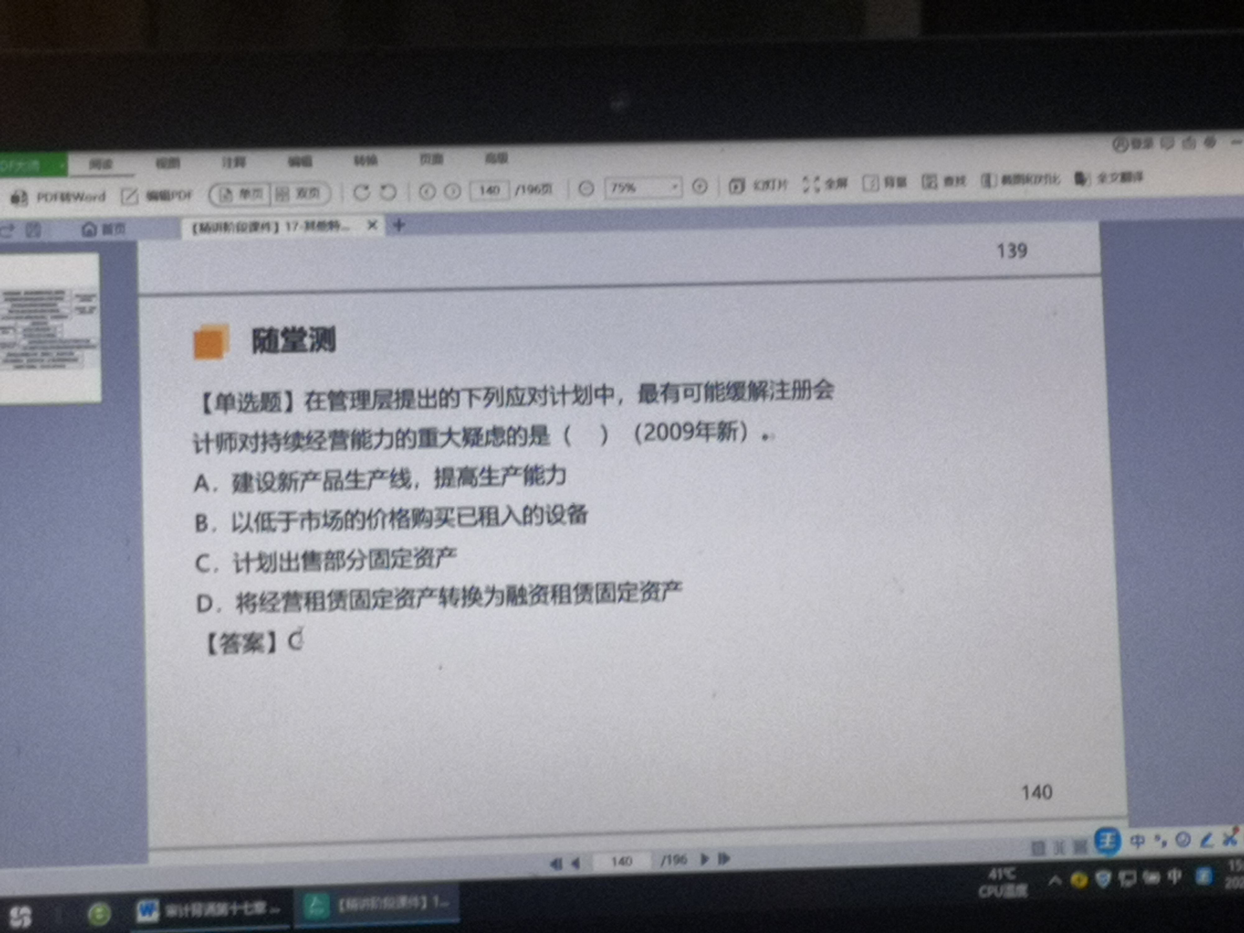 考核注册会计师复核管理层提出对持续经营能力产生重大疑虑事项或情况的应对计划。