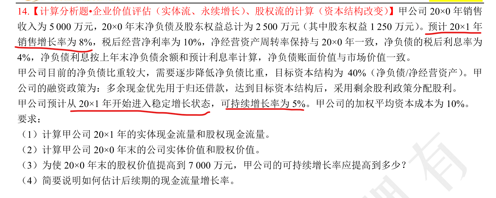 x1年进入稳定增长,是说x1年到x2年的增长是稳定增长,即x2年相对于x1年的增长率是可持续增长率5%。