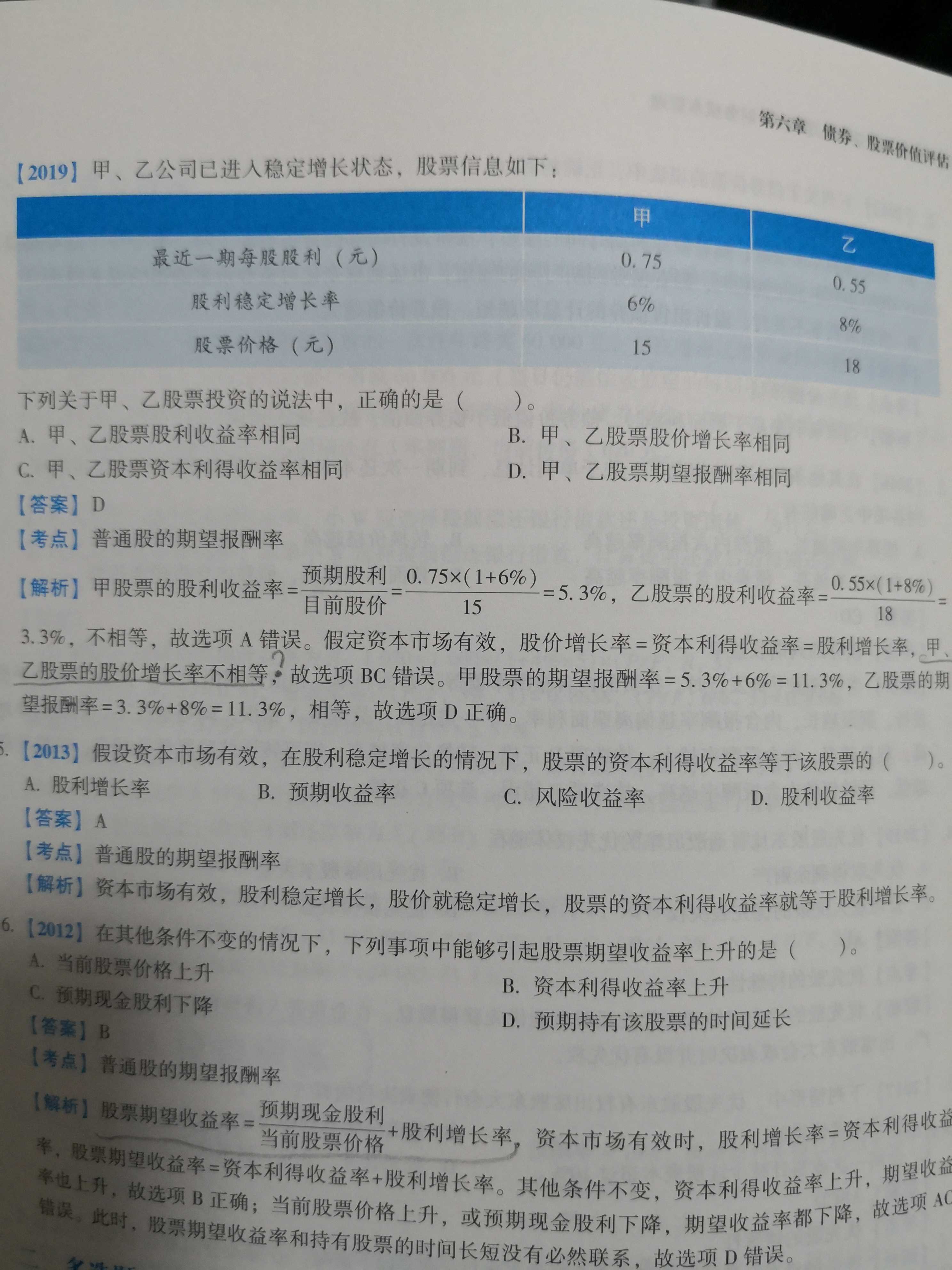 老师你好,第四题解析中,甲乙股票的股价增长率不相等,是不是写错了?(在题目中怎么能看出来二者的股价增长率不相等呢?)应该是股利增长率不相等。