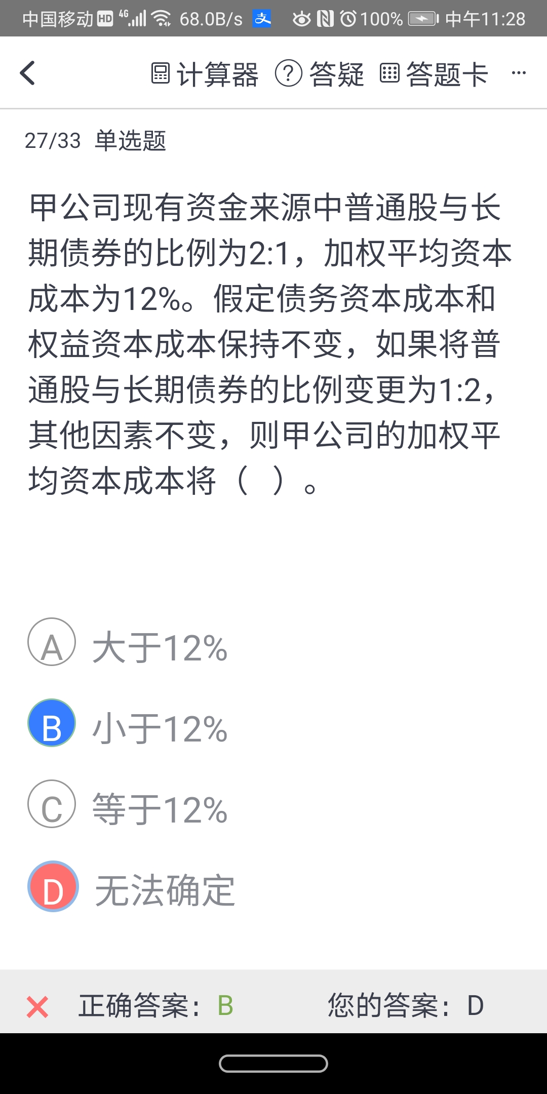 普通股的资本成本和优先股差不多啊,为什么选A...