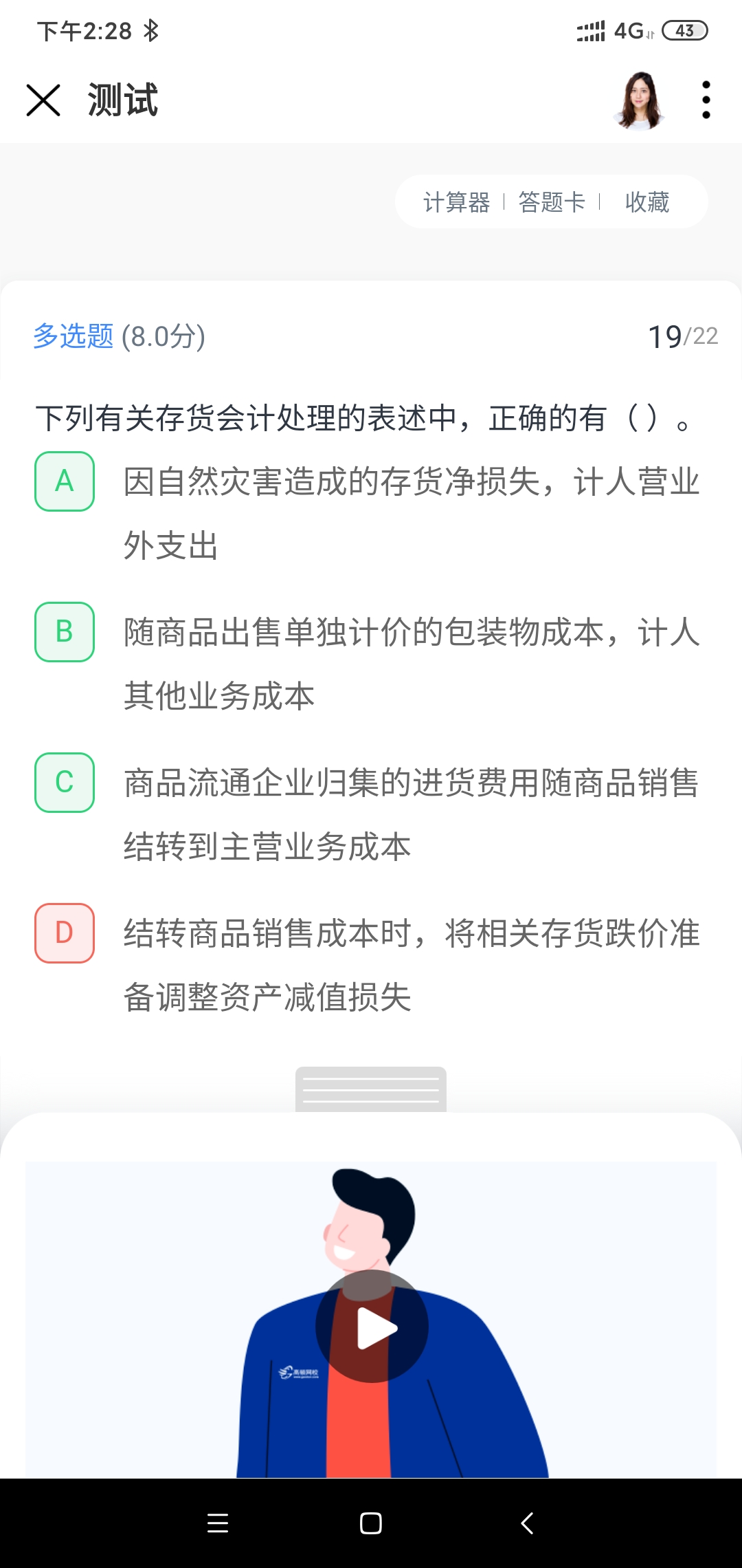 老师D答案中,将自用房屋转为采用公允价值进行后续计量的投资性...