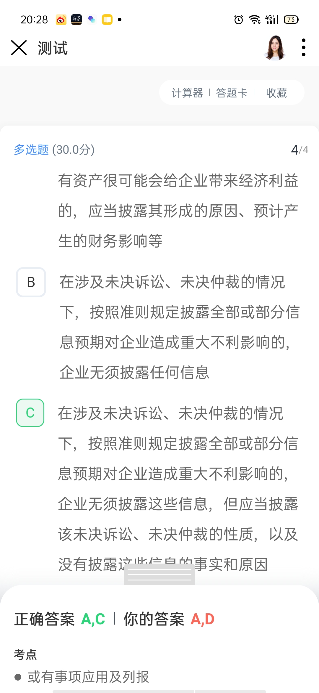 未决诉讼经济利益很可能流出企业确认预计负债,为什么C这里可以不披露呢